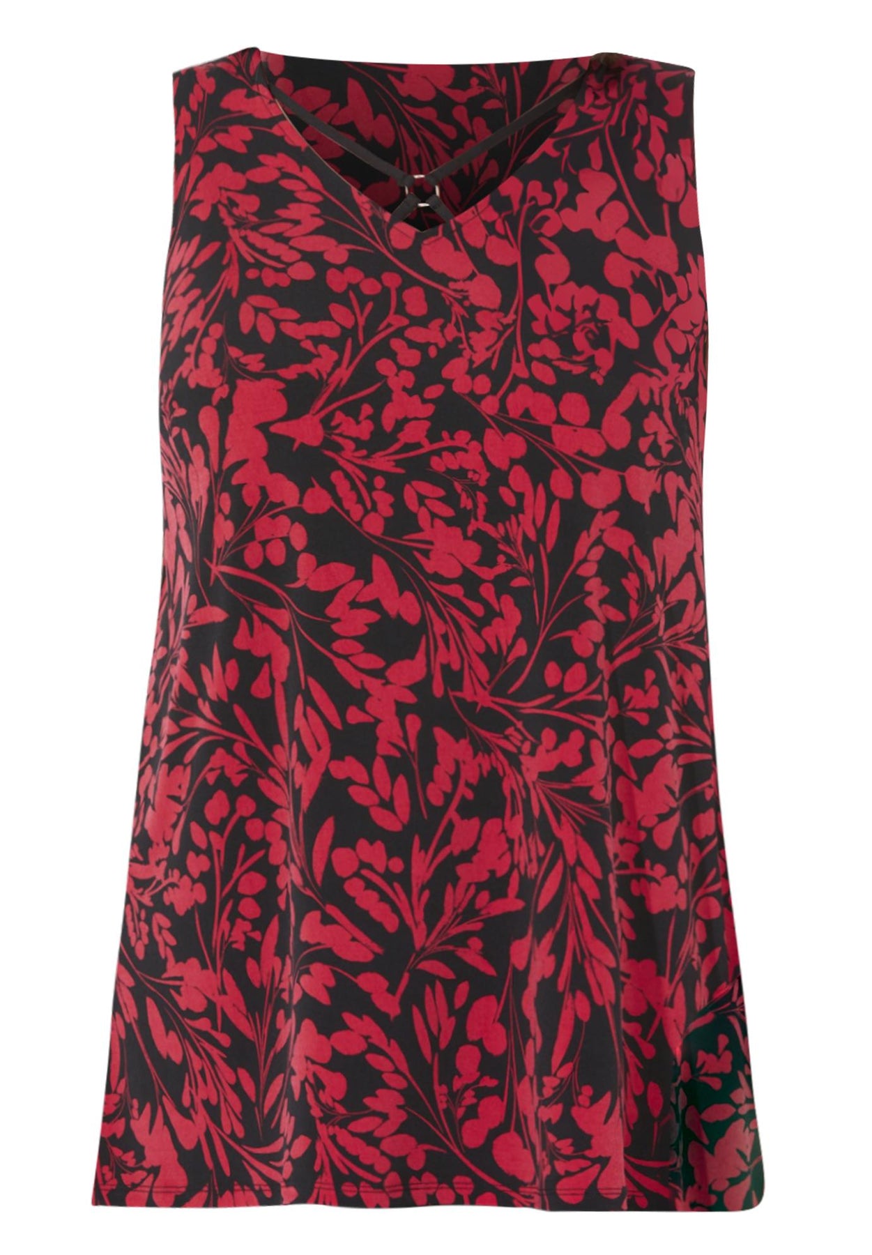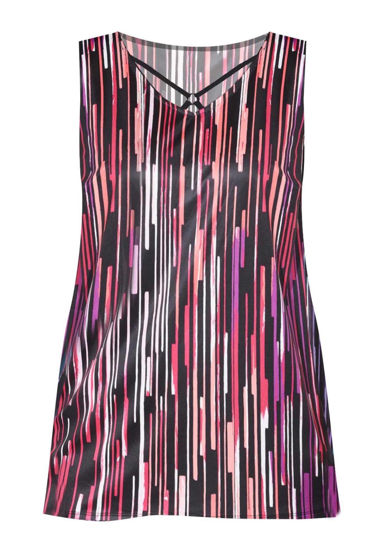 FIT: Relaxed and feminine with flirty crisscross V-neckline and ornamental detail. Sleeveless with front darts for shaping.