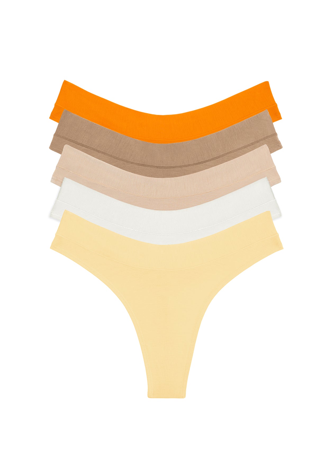 A minimal coverage, mid-rise silhouette. The Thong is cut with the same flattering back V shape as our Bikini.