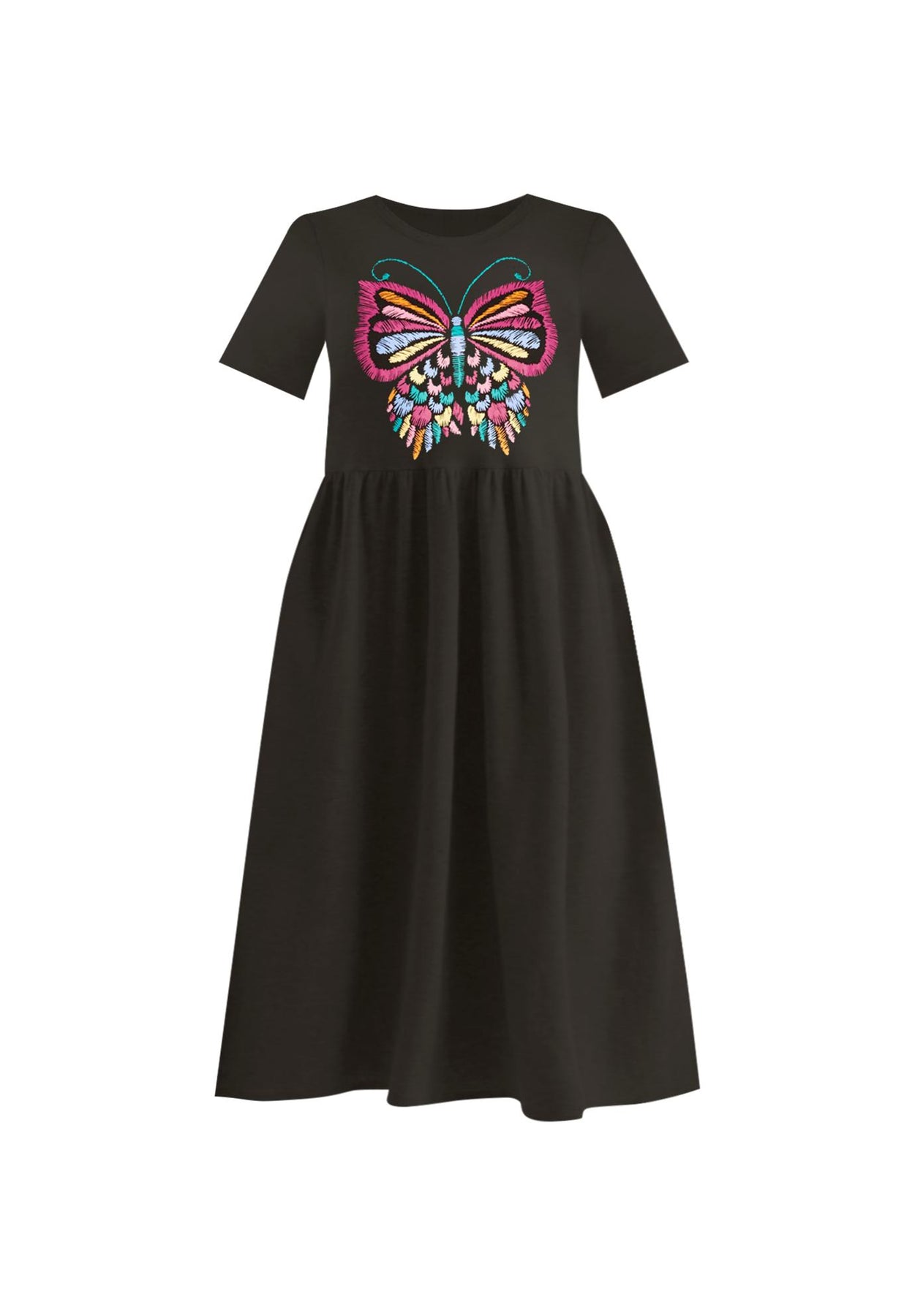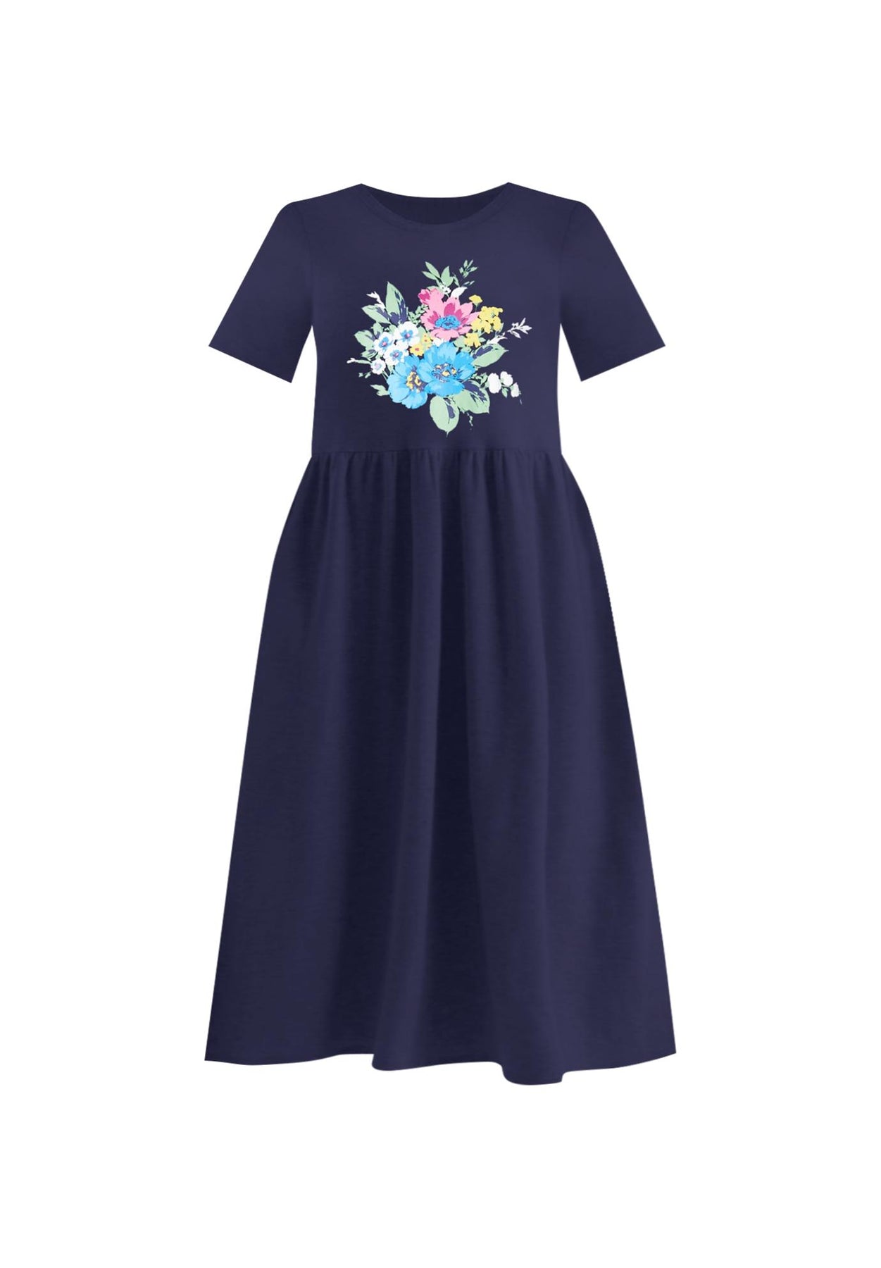 Relax comfortably in this flowing dress. Perfect for everyday wear from a quick lunch to running errands. Easy scoop neckline with short-sleeves. Carry your essentials with its side seam pockets. Straight hem. 48" length.