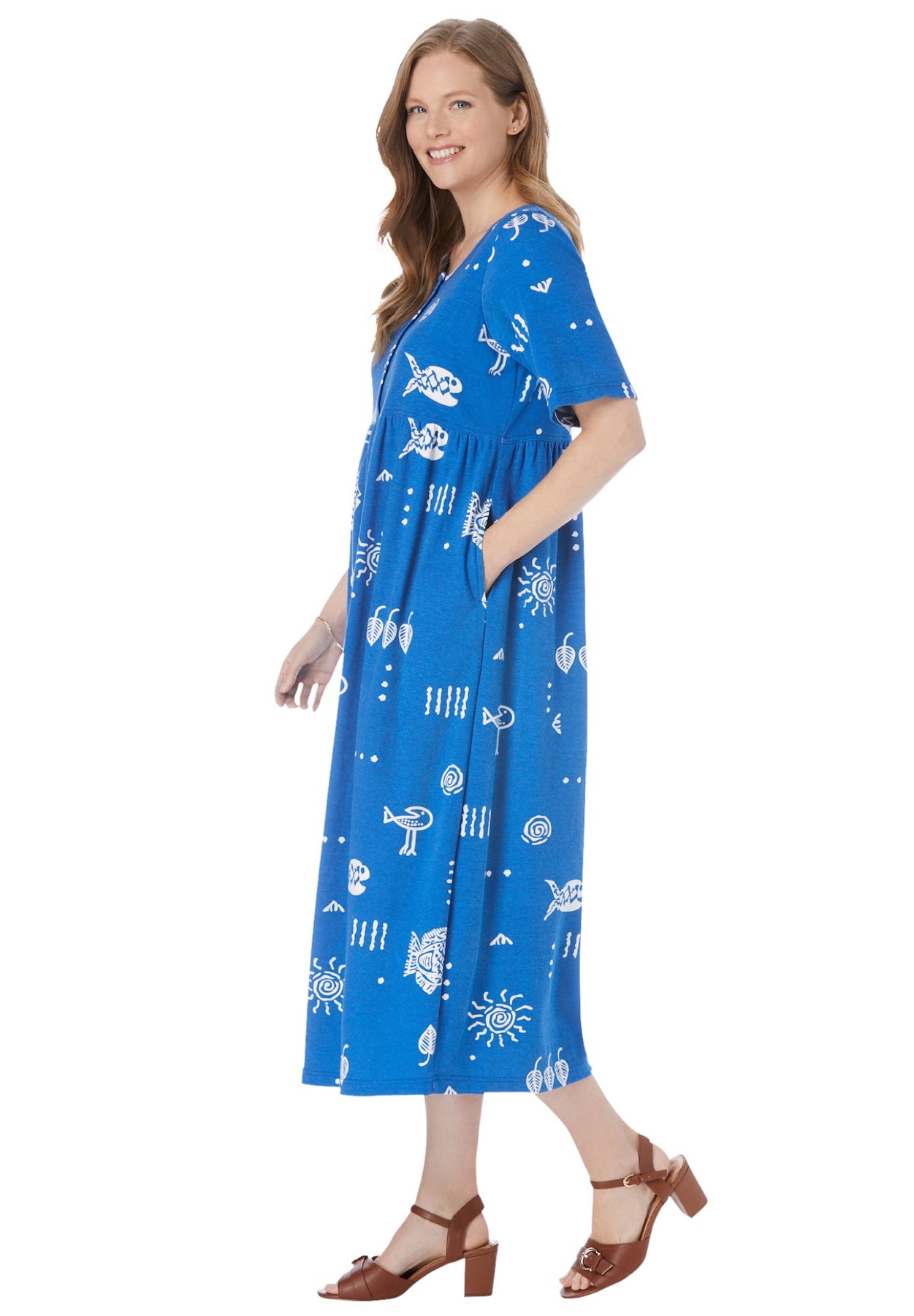 - Feel instantly relaxed with our Stamped Empire Waist Dress, designed to make you feel like you're on vacation.