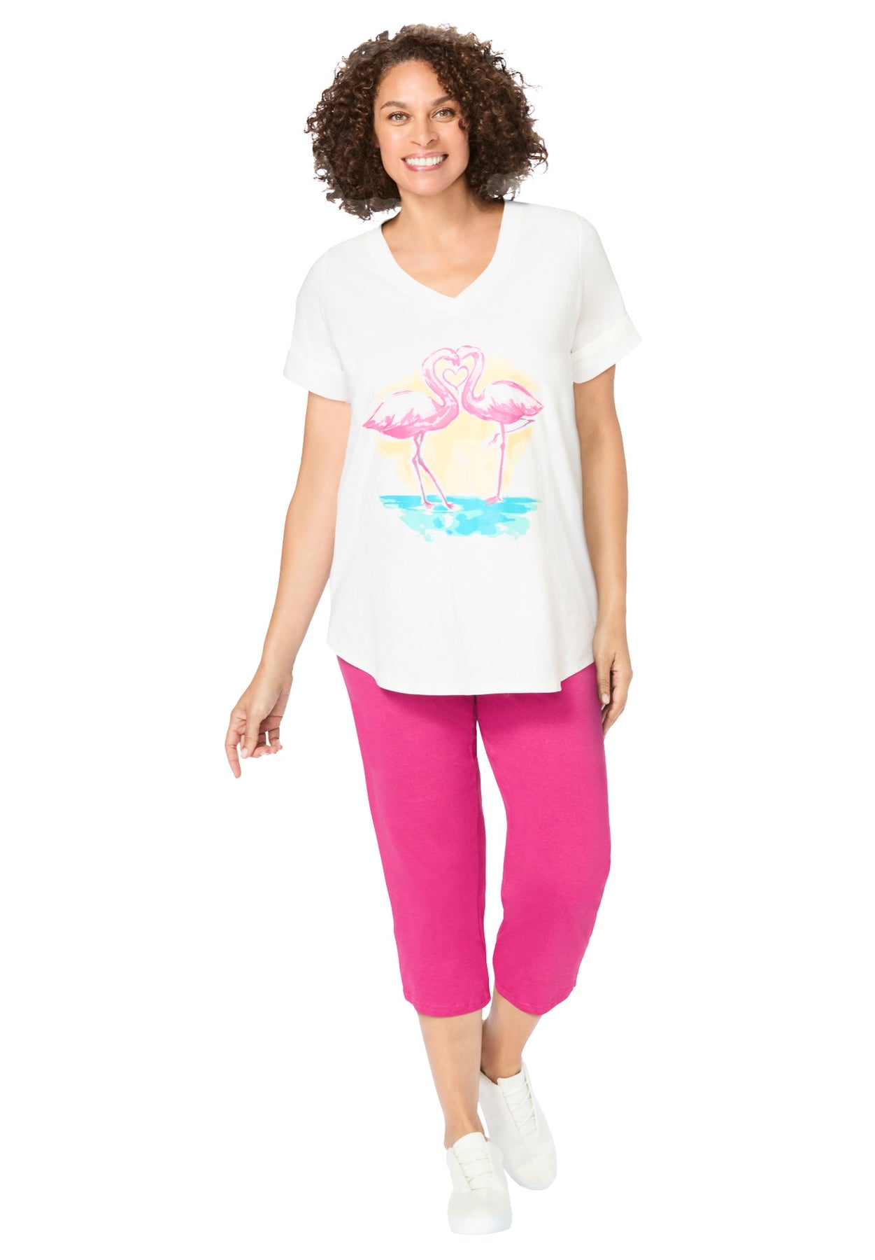 • Coordinating solid capri pants that complement the tunic perfectly.