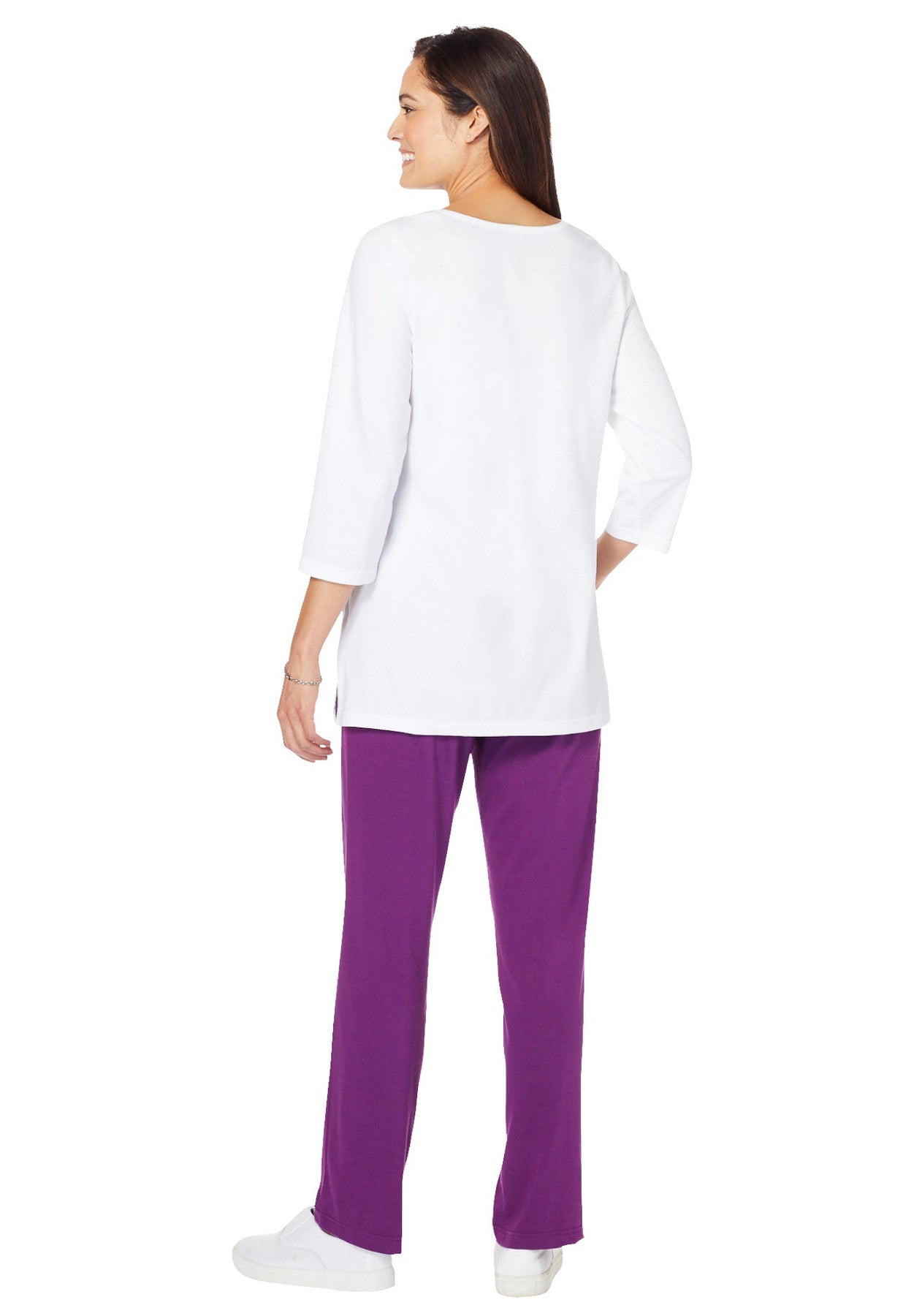 I now have 5 of these outfits They are the most comfortable pants Ive ever worn And the flower on the leg just adds a flair to it The sizes run close to the chart and they wash beautifully The only 2 things I wish were added are more colors and pockets Pockets would really be a plus If youre thinking about them dont hesitate