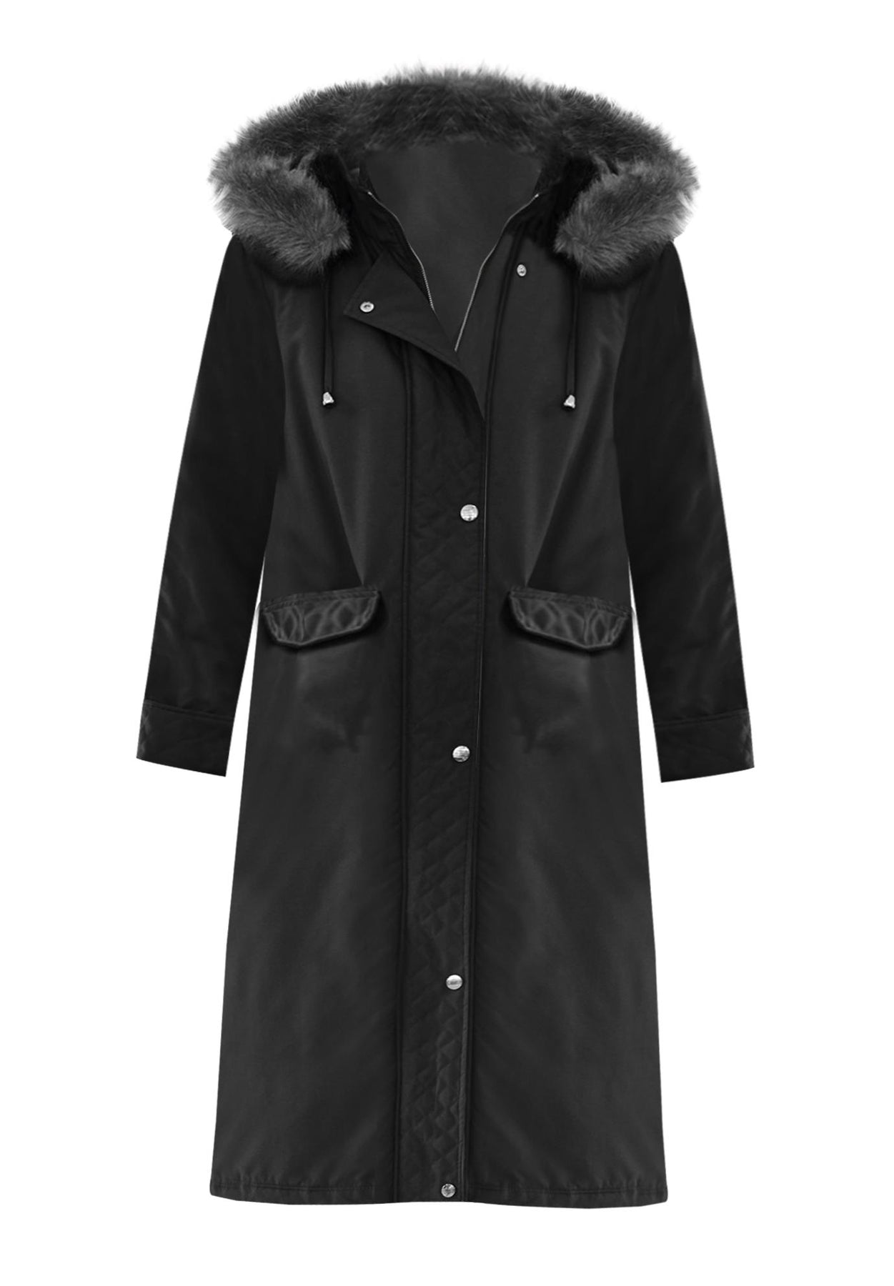 Conquer winter in this warm, lightweight and cozy microfiber parka. A stand collar and a hood with faux-fur trim keep out wind, rain and snow, and a zip front with snaps keeps you secure. The quilted lining keeps you incredibly warm with a faux down fill. Never catch a chill in this extra-long style that will wear well season after season. Accented with a quilted texture on the front placket and sleeve cuffs.