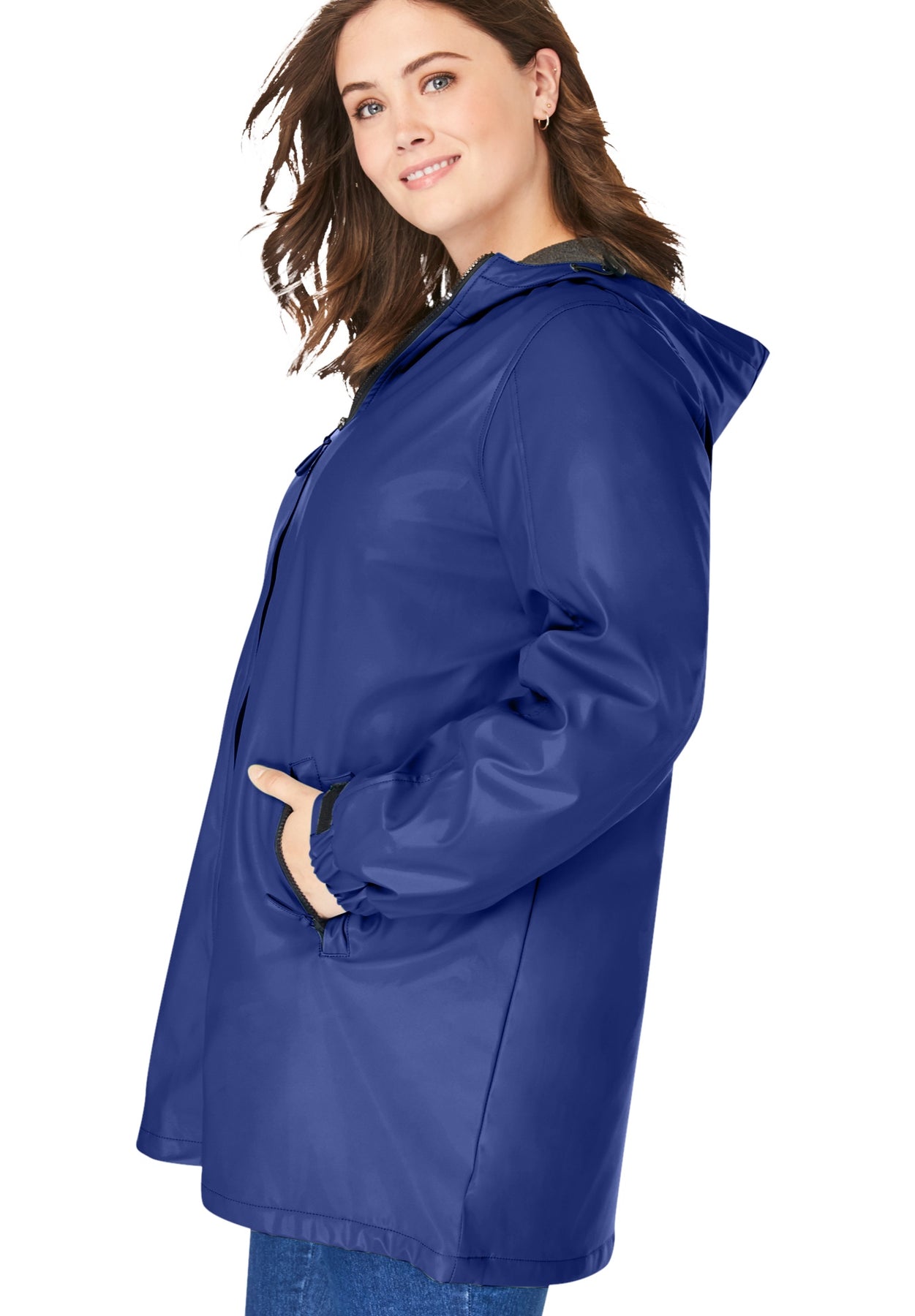 - Stay dry and comfortable with our water-resistant Hooded Slicker Raincoat.