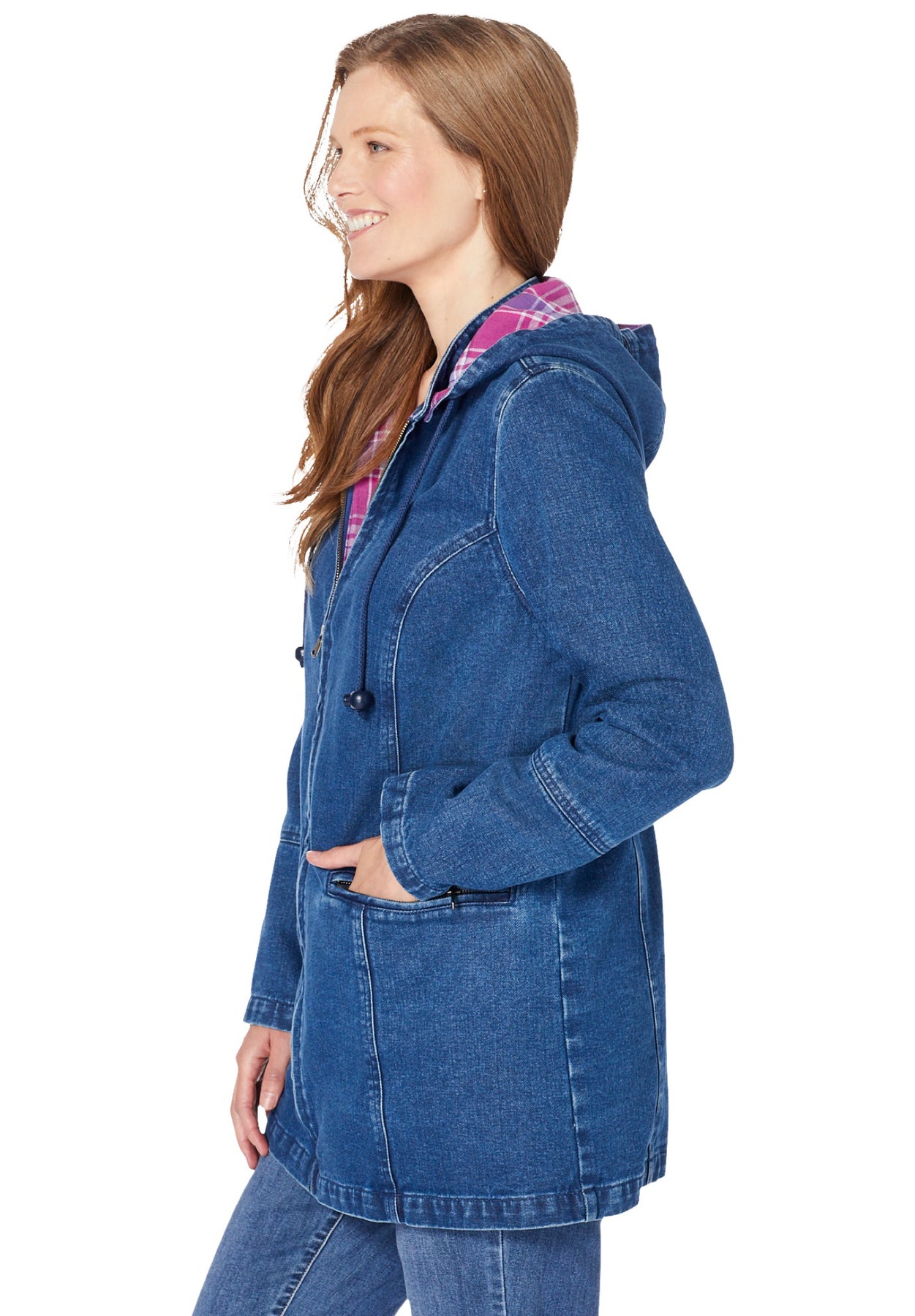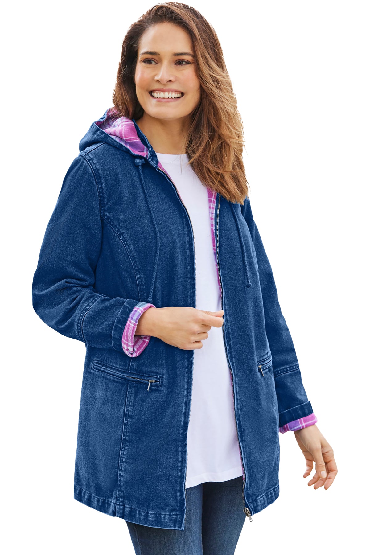 The classic denim jacket gets a cozy upgrade with flannel lining. Easy full zip front. The flannel plaid lining is perfect for changing seasons.