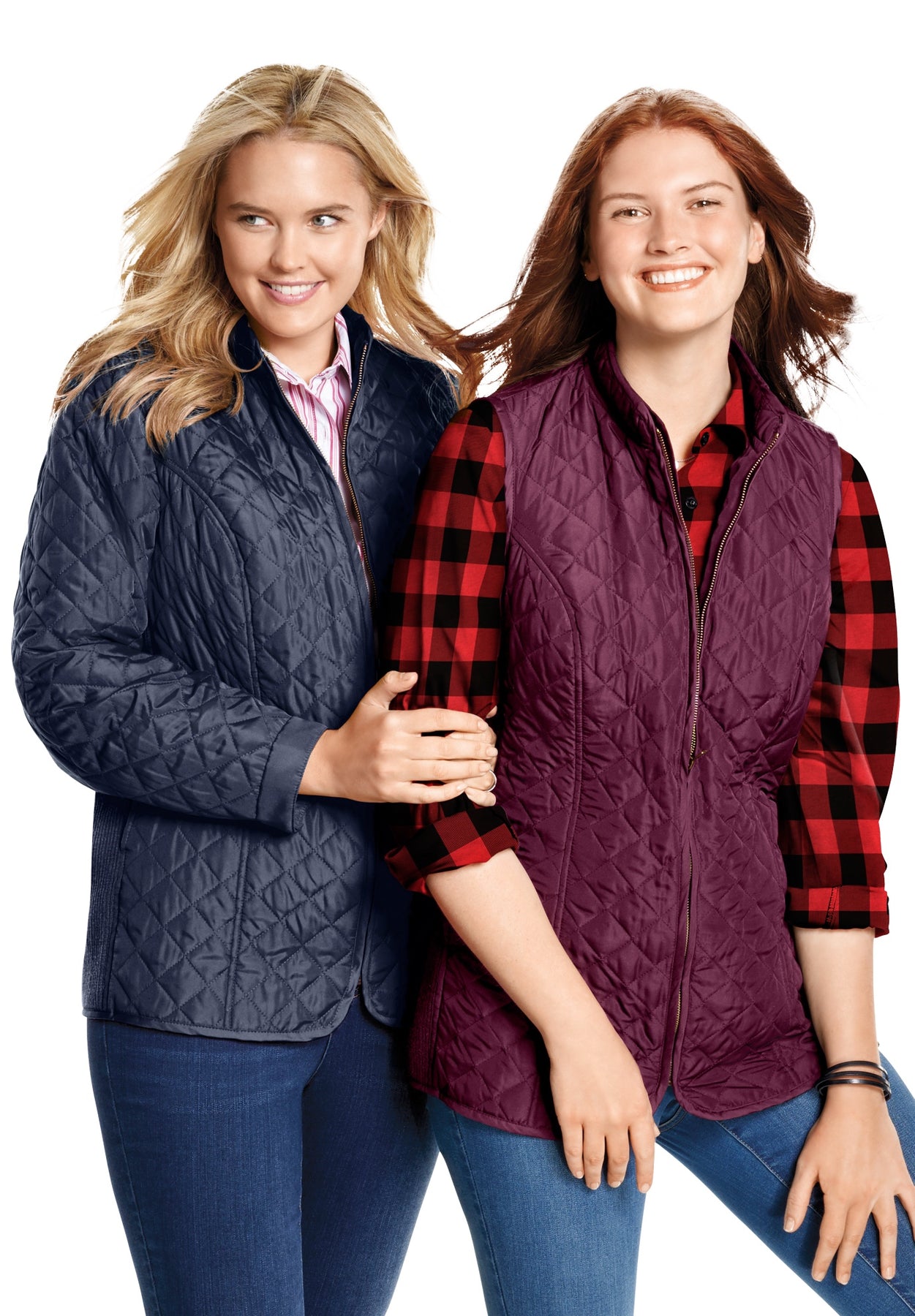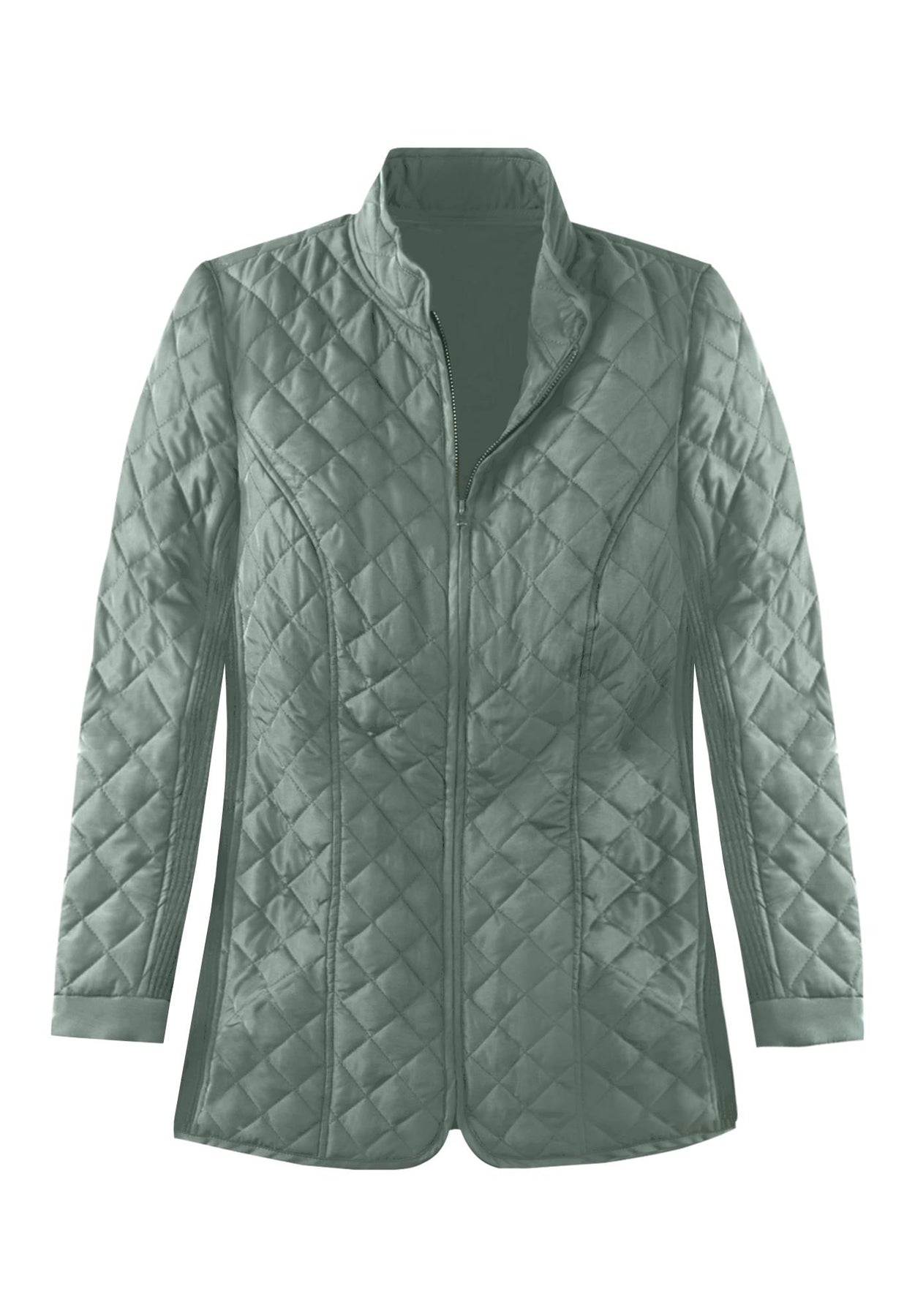 This quilted jacket is a must-have piece in your cold-weather wardrobe. Princess seaming and ribbed side panels create a lovely shape that contours to the body, and a zip front with stand collar keeps you nice and cozy.