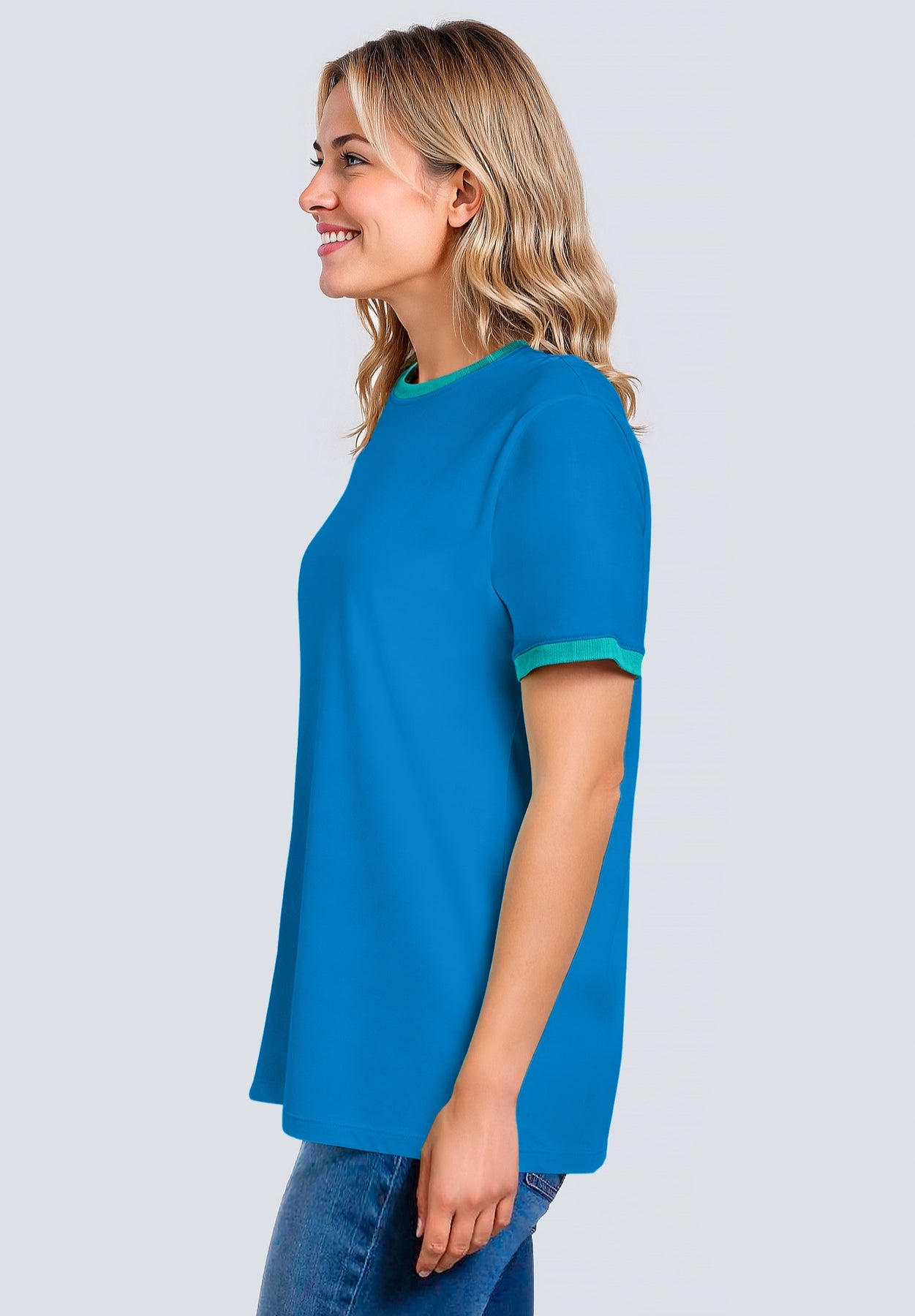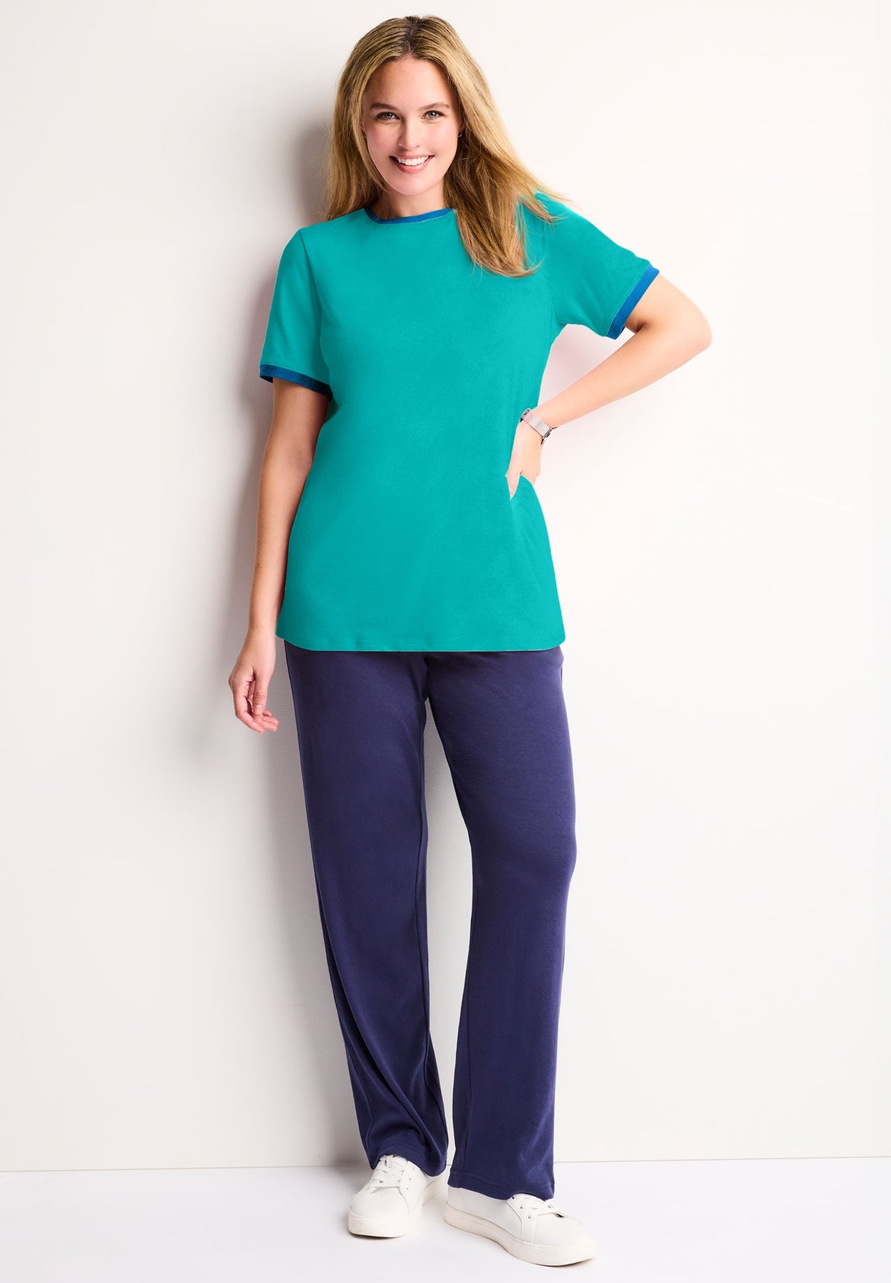 Double the savings with this plus size women’s 2-pack contrast tee! Designed with a sleek contrast trim at crew neckline and short sleeves, they’ll be your go-to tees. Easy pullover style to pair with jeans, leggings and more to keep you comfy on your busy or relaxing day!