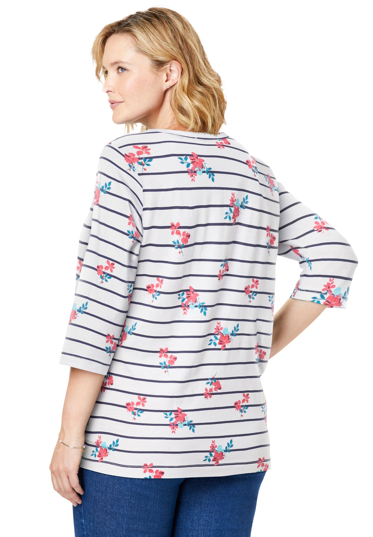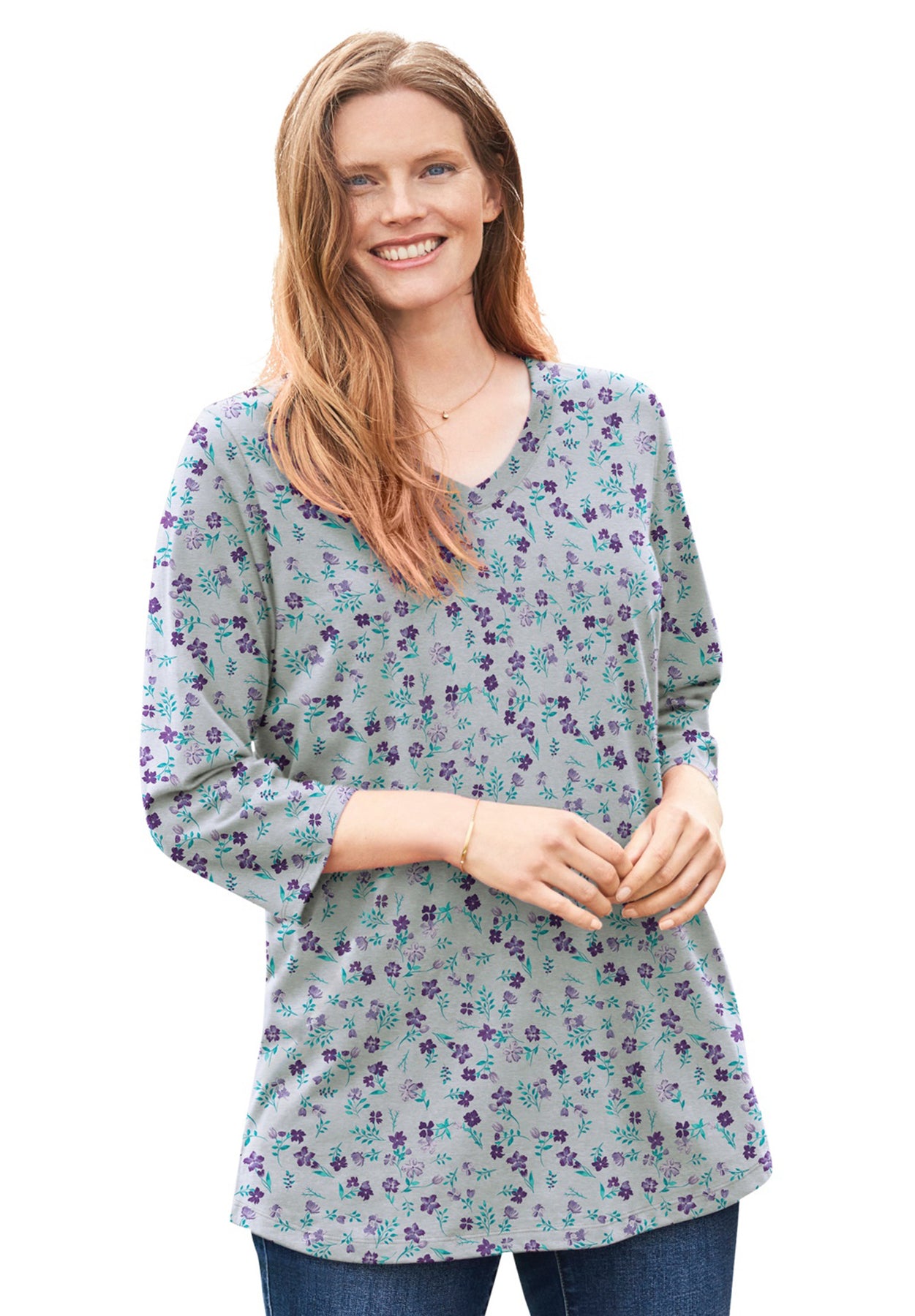 Perfect Printed Three-Quarter Sleeve V-Neck Tee