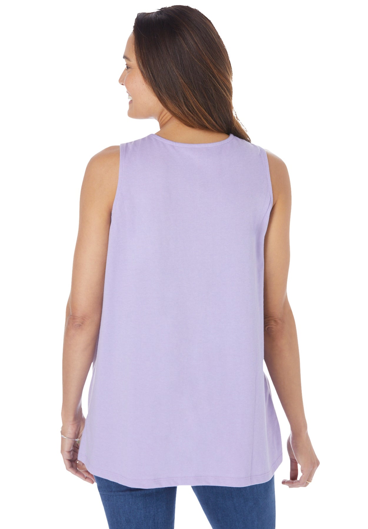 Sleeveless, relaxed-fit top with embroidery at the crew neckline.