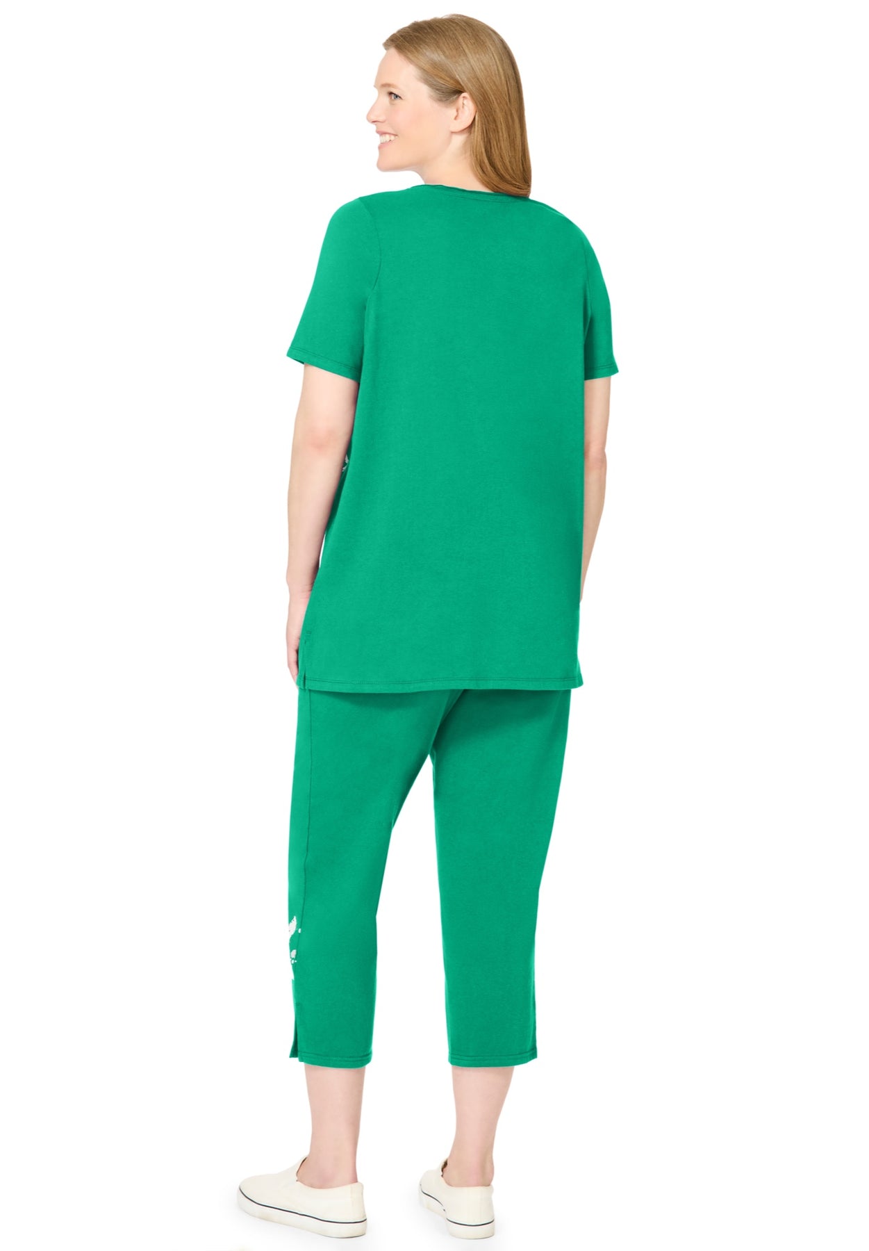 • Includes a relaxed V-neck tee and comfortable capri pants.