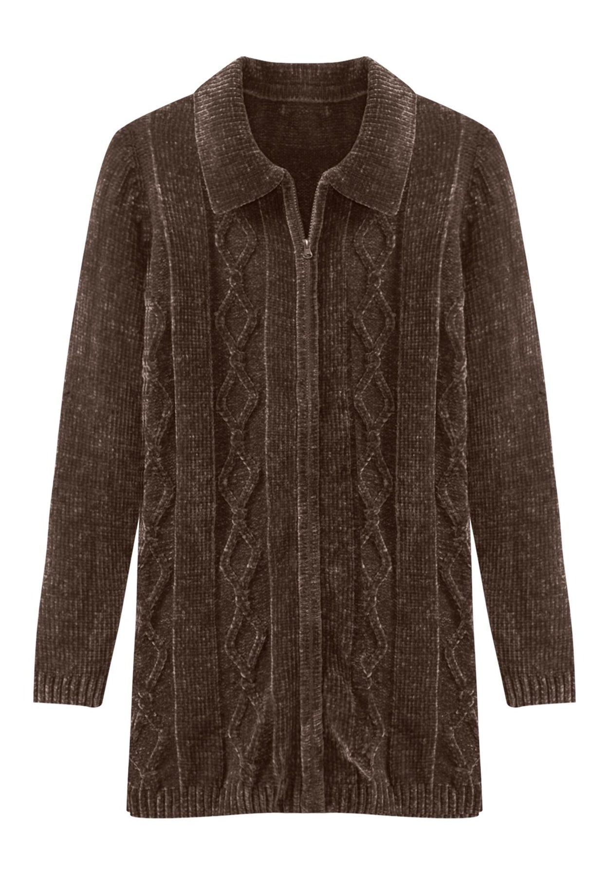Chenille Zip Cable Cardigan