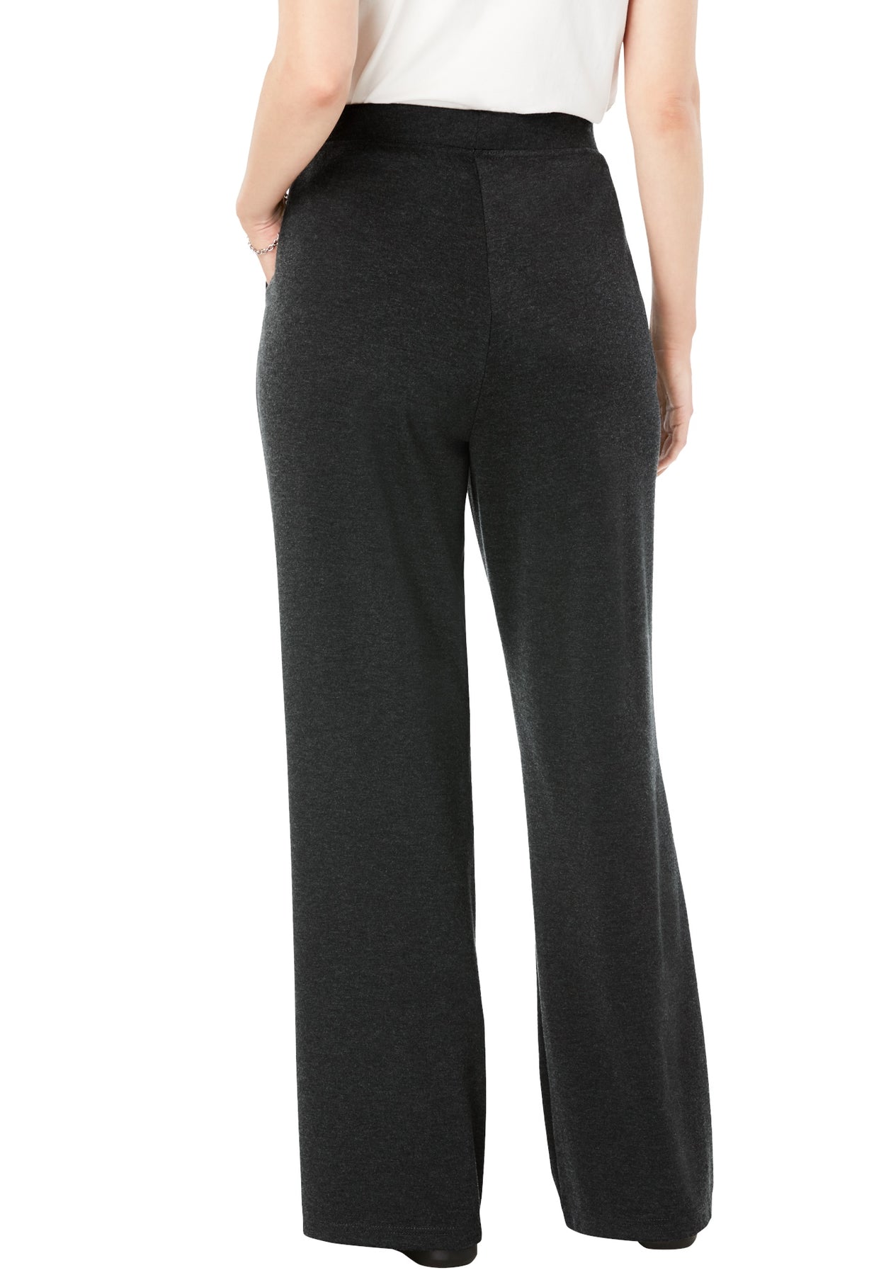 Stretch Ponte Knit Pull-On Wide-Leg Pants | Woman Within