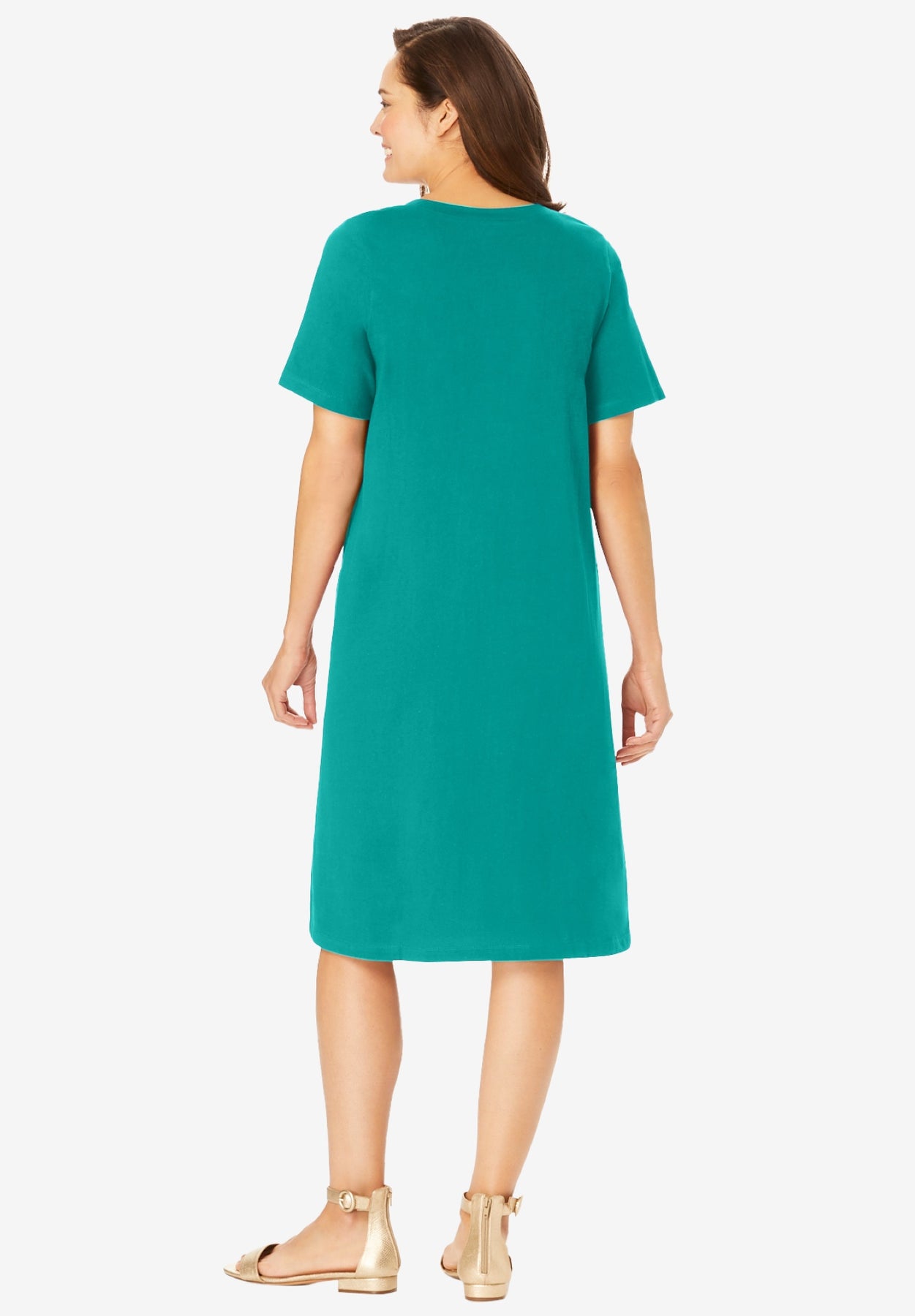 Perfect Short-Sleeve V-Neck Tee Dress | Woman Within