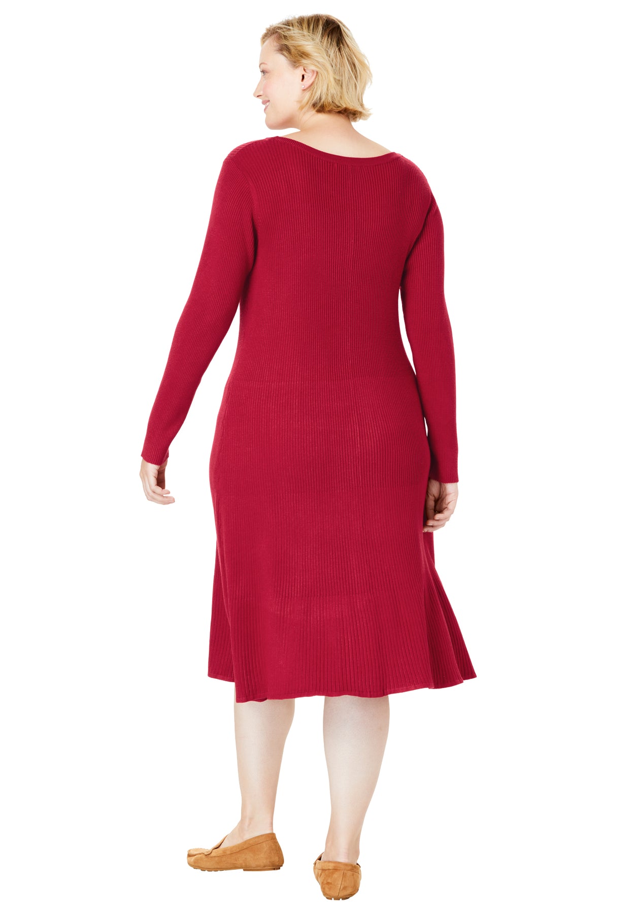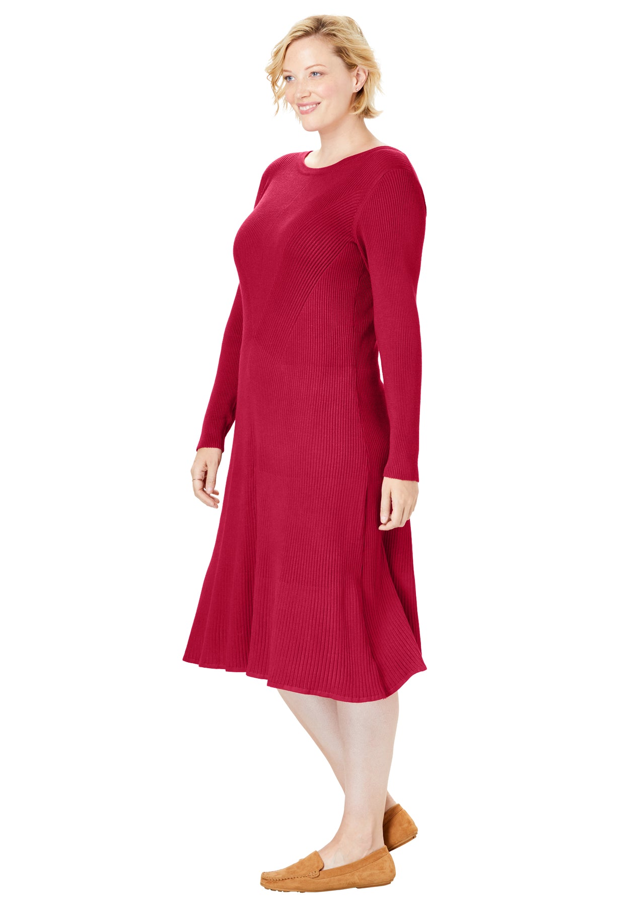 We can't get enough of our super flattering fit-and-flare knit dress. Made with long sleeve and a midi length for just the right amount of coverage.