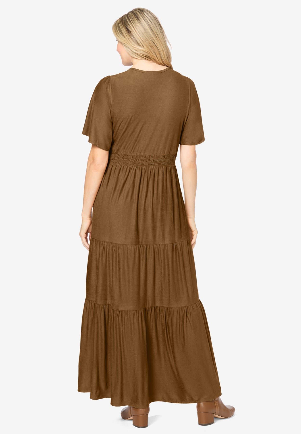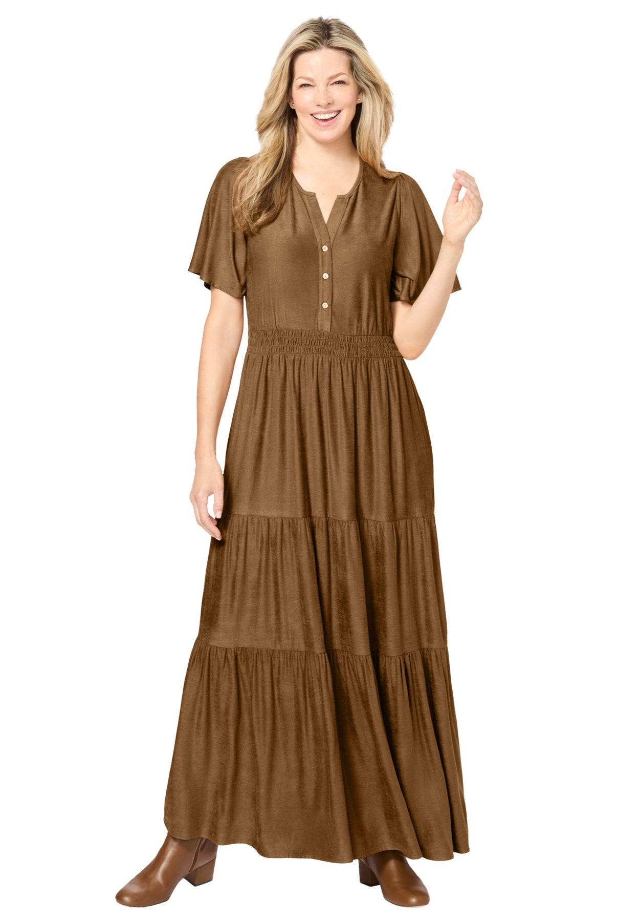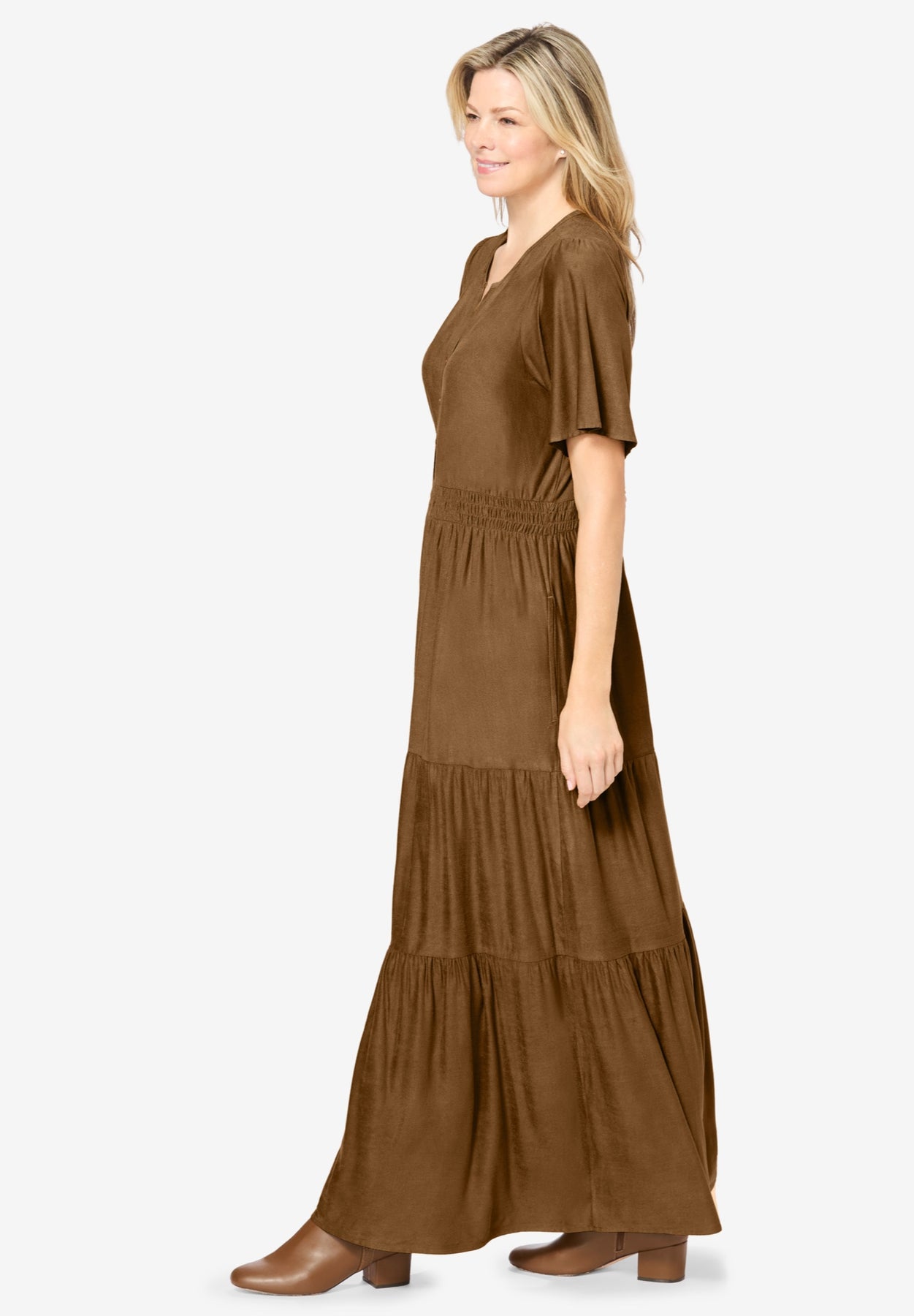 - Tiered look with side seams pockets