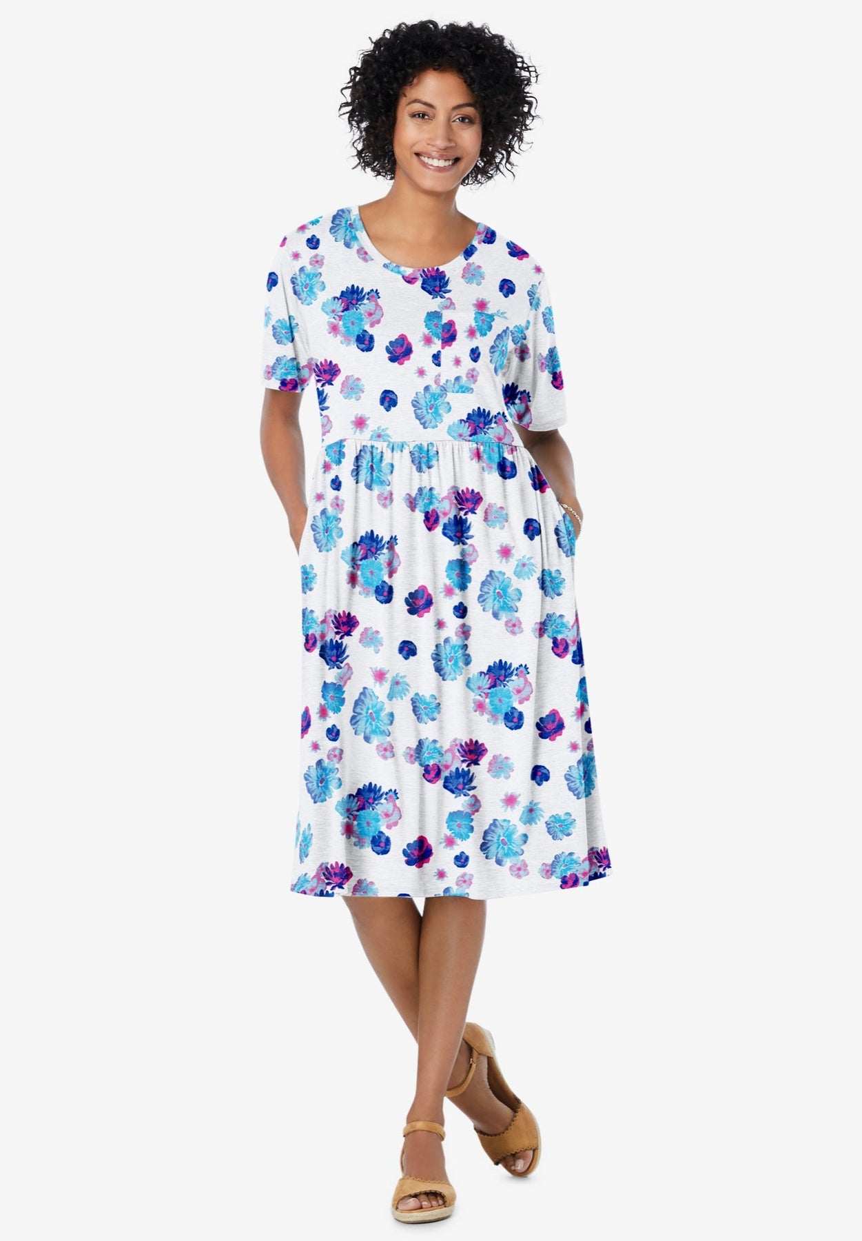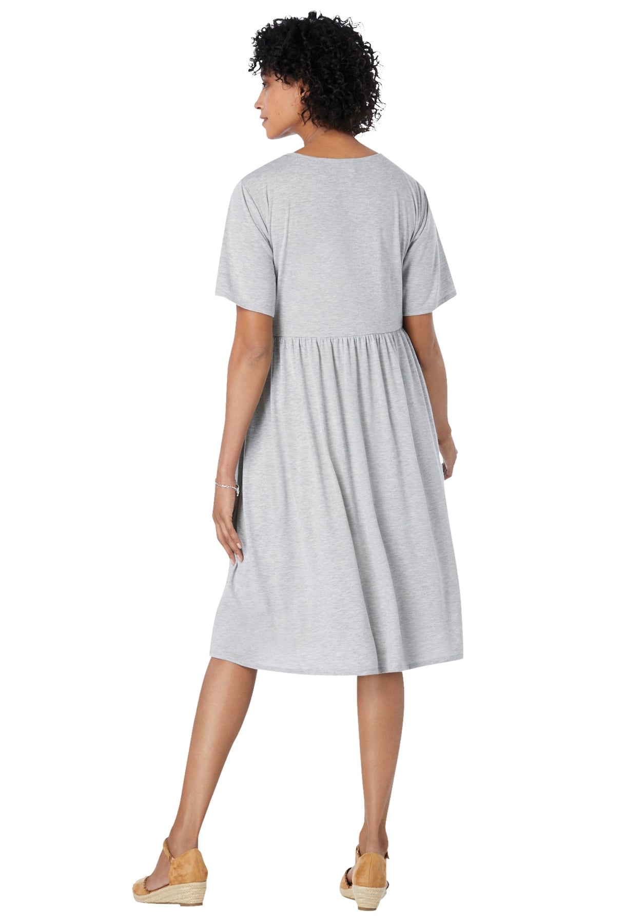 • Soft and relaxed tee dress, empire waist for ultimate comfort.