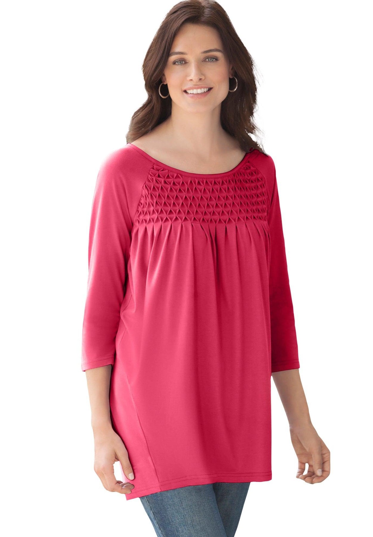 Three-Quarter Sleeve Smocked Tunic | Woman Within