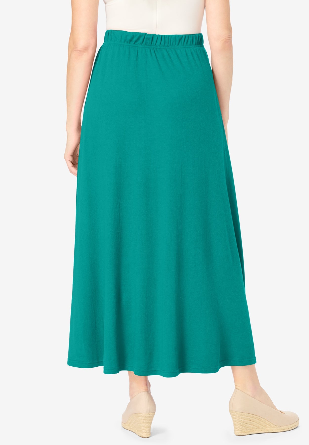 Rated number one for all-day comfort and fantastic versatility, the 7-Day Knit maxi skirt should be an important part of your wardrobe in every color! This soft, breathable fabric blend always looks smooth. The full covered elastic waistband offers pull-on convenience and a made-for-you fit. The easy sweep cut is perfect for running errands, casual days, dressed-up casual—even lounging at home! The essential side-seam pockets add practicality without compromising style.