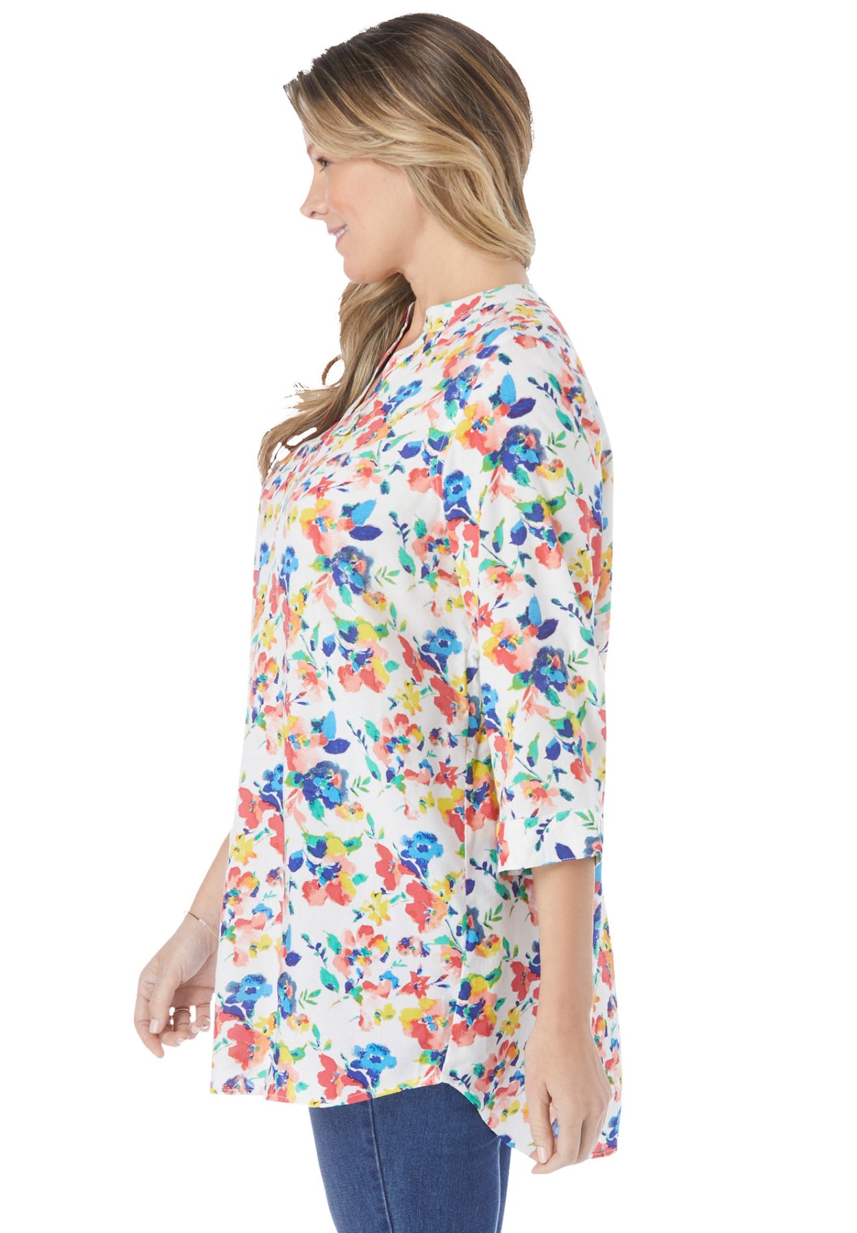 We've updated your favorite tab-front tunic in a sleeveless, easy-layering style. Mandarin neckline combines with a functional button tab and shirttail hem, making this a warm-weather must-have.