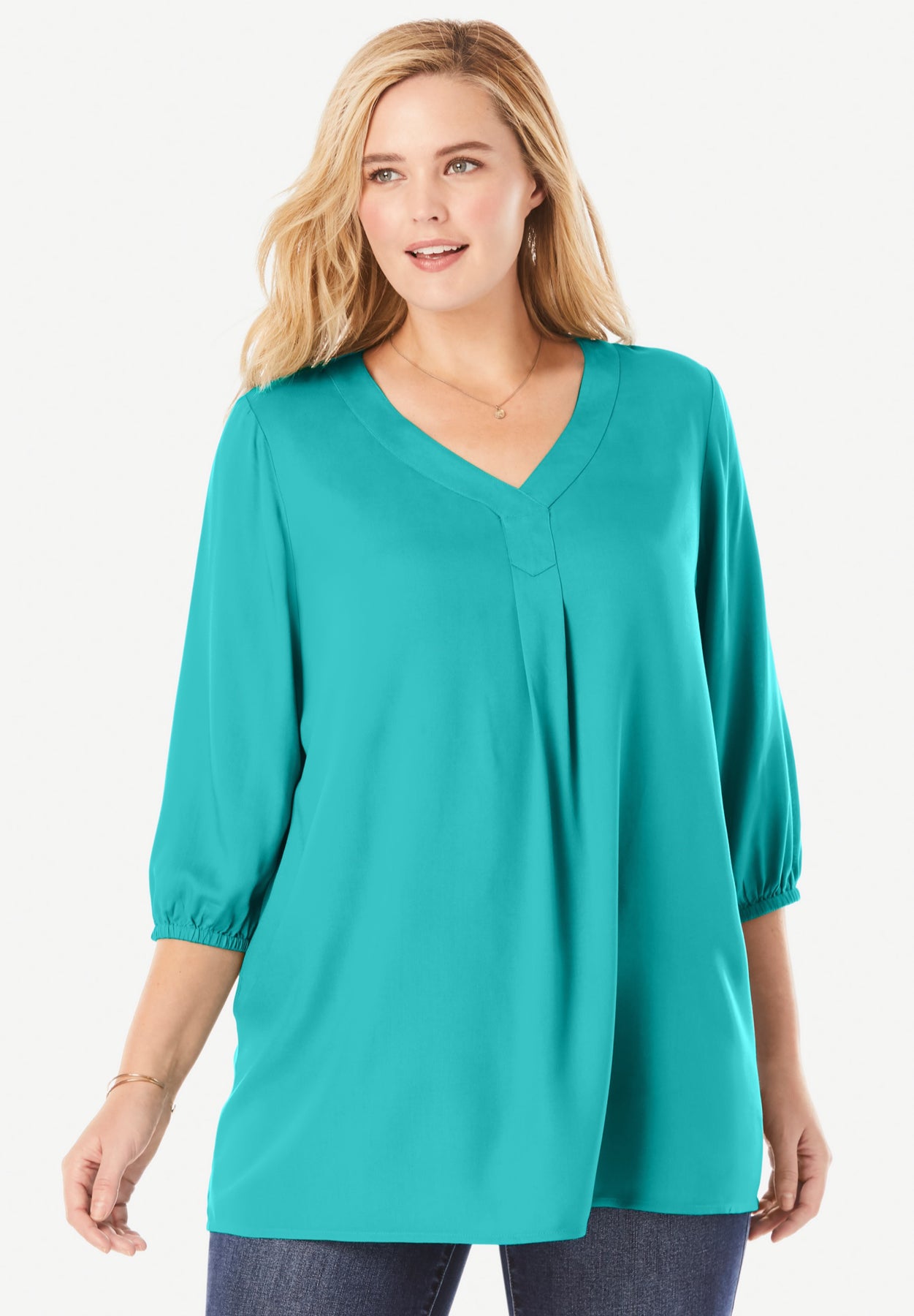 Three-Quarter Sleeve Pleat-Front Tunic | Woman Within