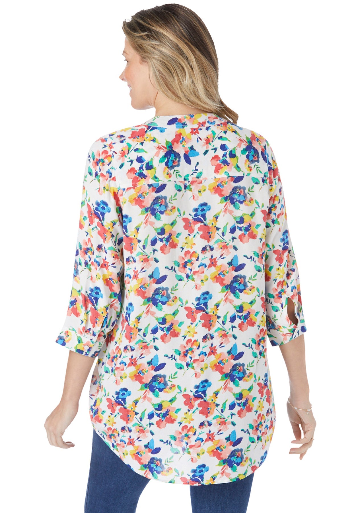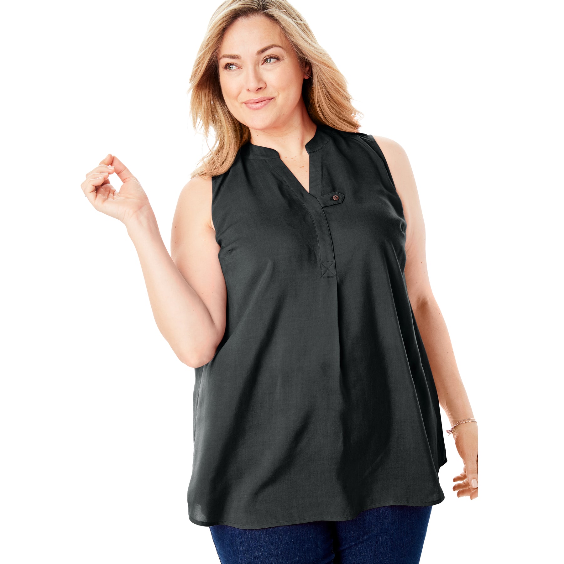 We've updated your favorite tab-front tunic in a sleeveless, easy-layering style. Mandarin neckline combines with a functional button tab and shirttail hem, making this a warm-weather must-have.