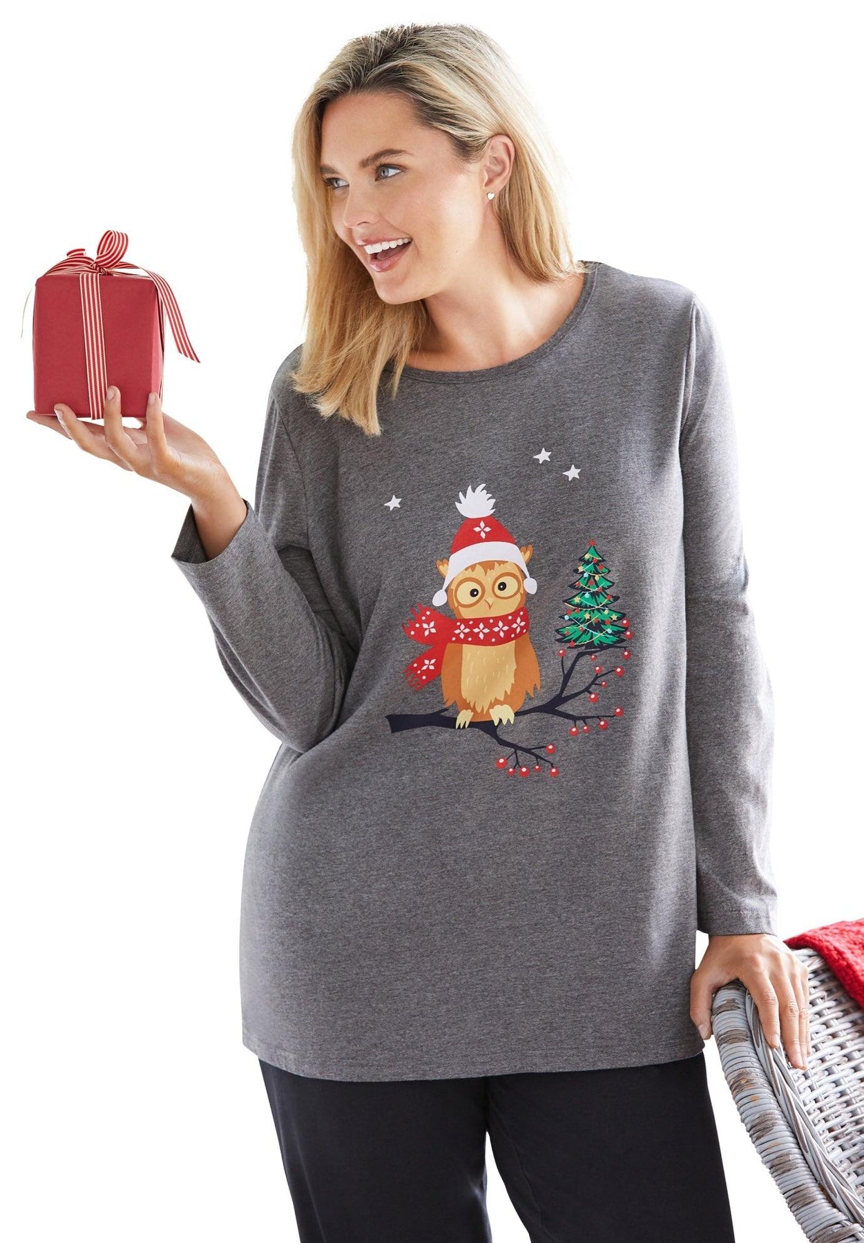 Celebrate the season with these super cute graphic screen printed tees featuring festive motifs. Comfy jersey pairs with a relaxed fit and long sleeves to keep you cheery. Perfect for gifting.