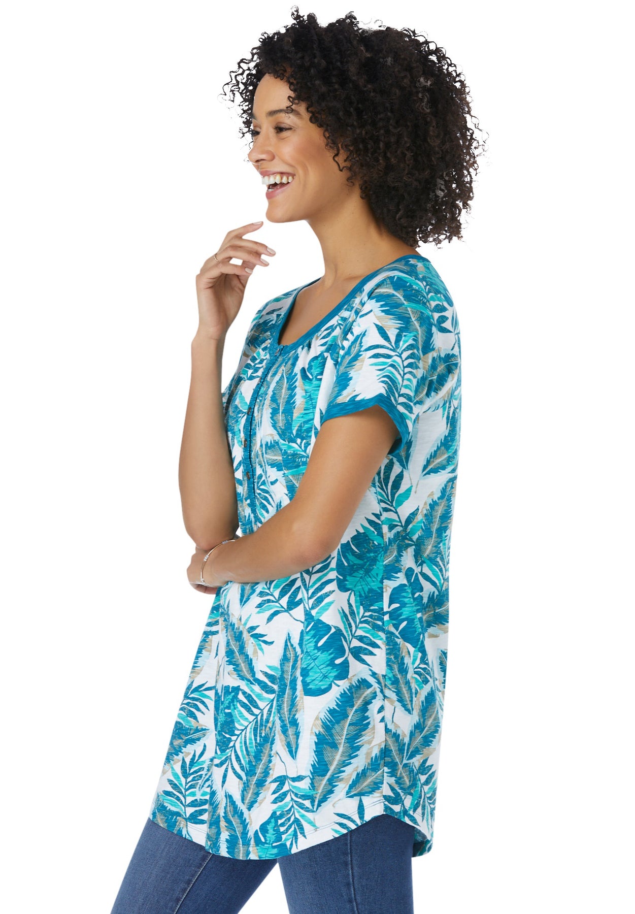 Our Knit Henley Tunic has a relaxed silhouette and roomy, generous fit. The vibrant, pretty print feels like an instant vacation. Add this top to your casual comfort collection.