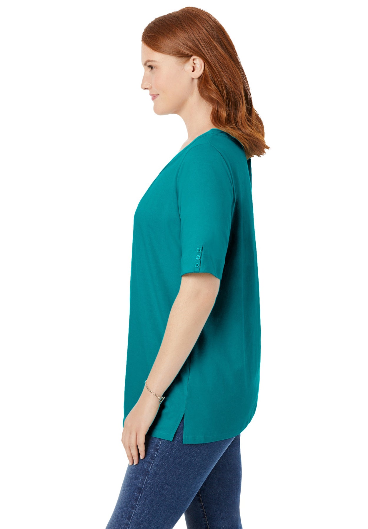 Suprema® Studio 3/4 Sleeve Studded V-Neck Tee