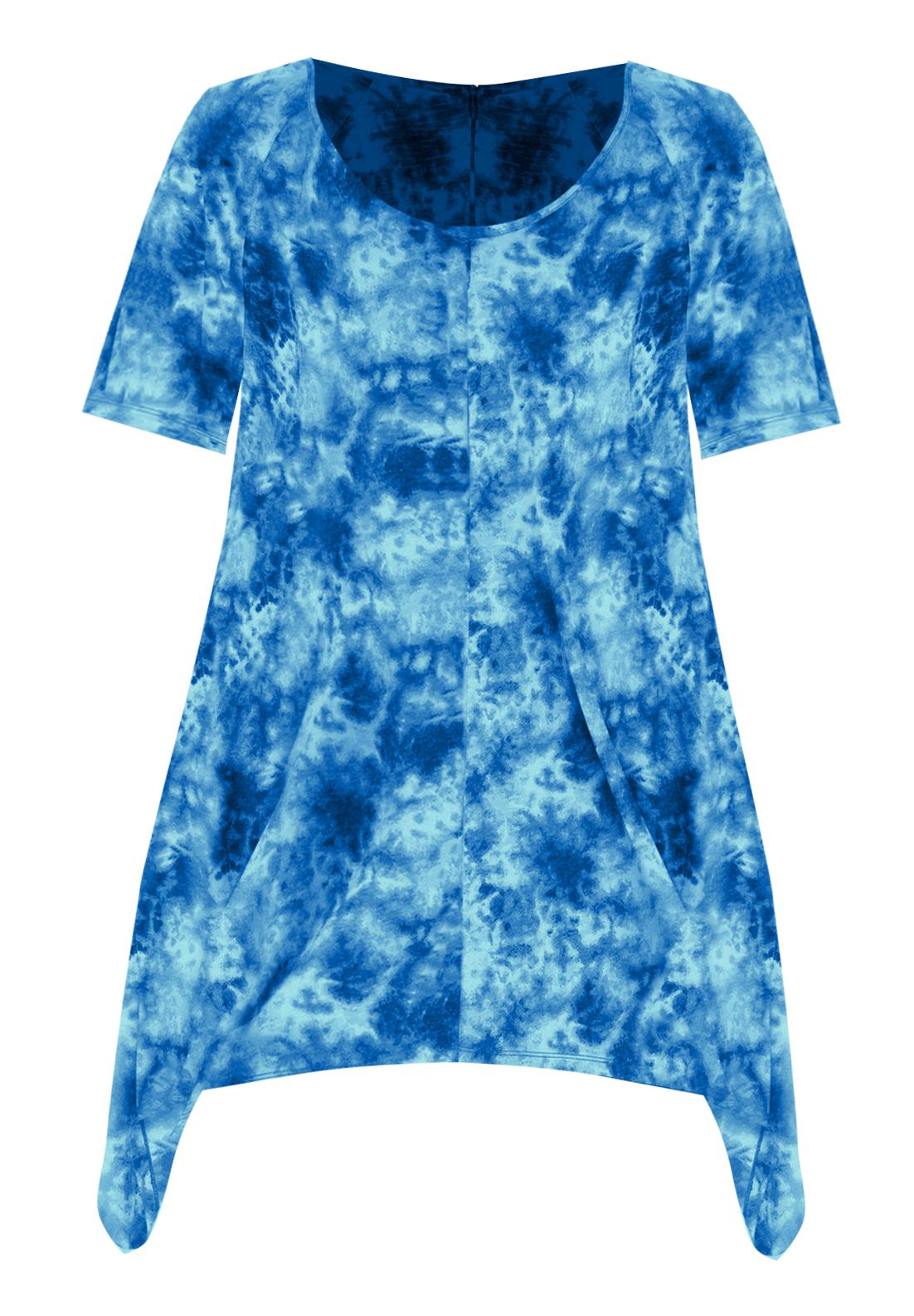 This bold tunic with a trapeze shape is too pretty and comfortable to pass up. The silhouette is roomy and easy to wear and the bright, bold patterns add a feminine accent. Made with sharkbite hem and shirred raglan sleeves.