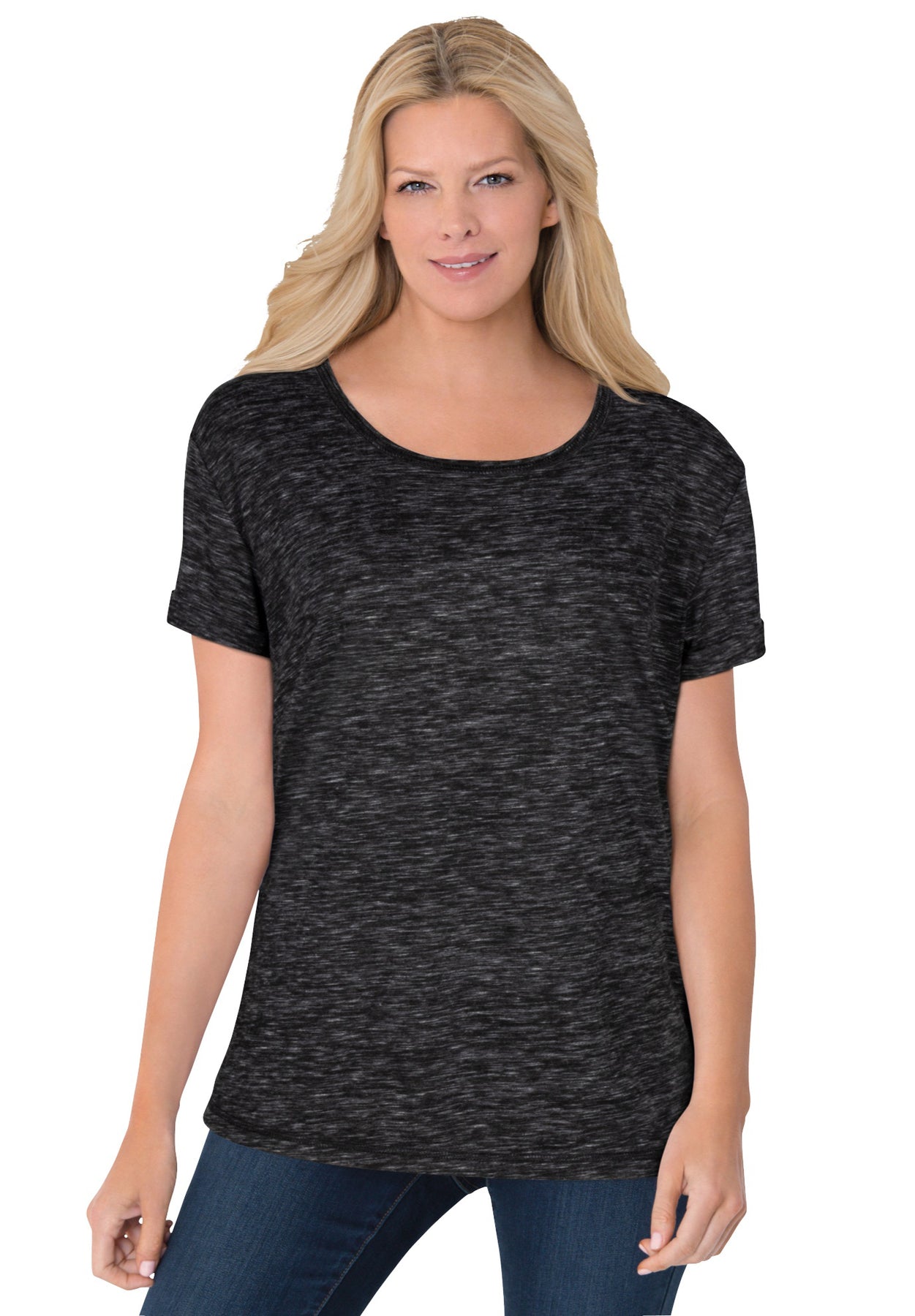 Marled Cuffed-Sleeve Tee | Woman Within