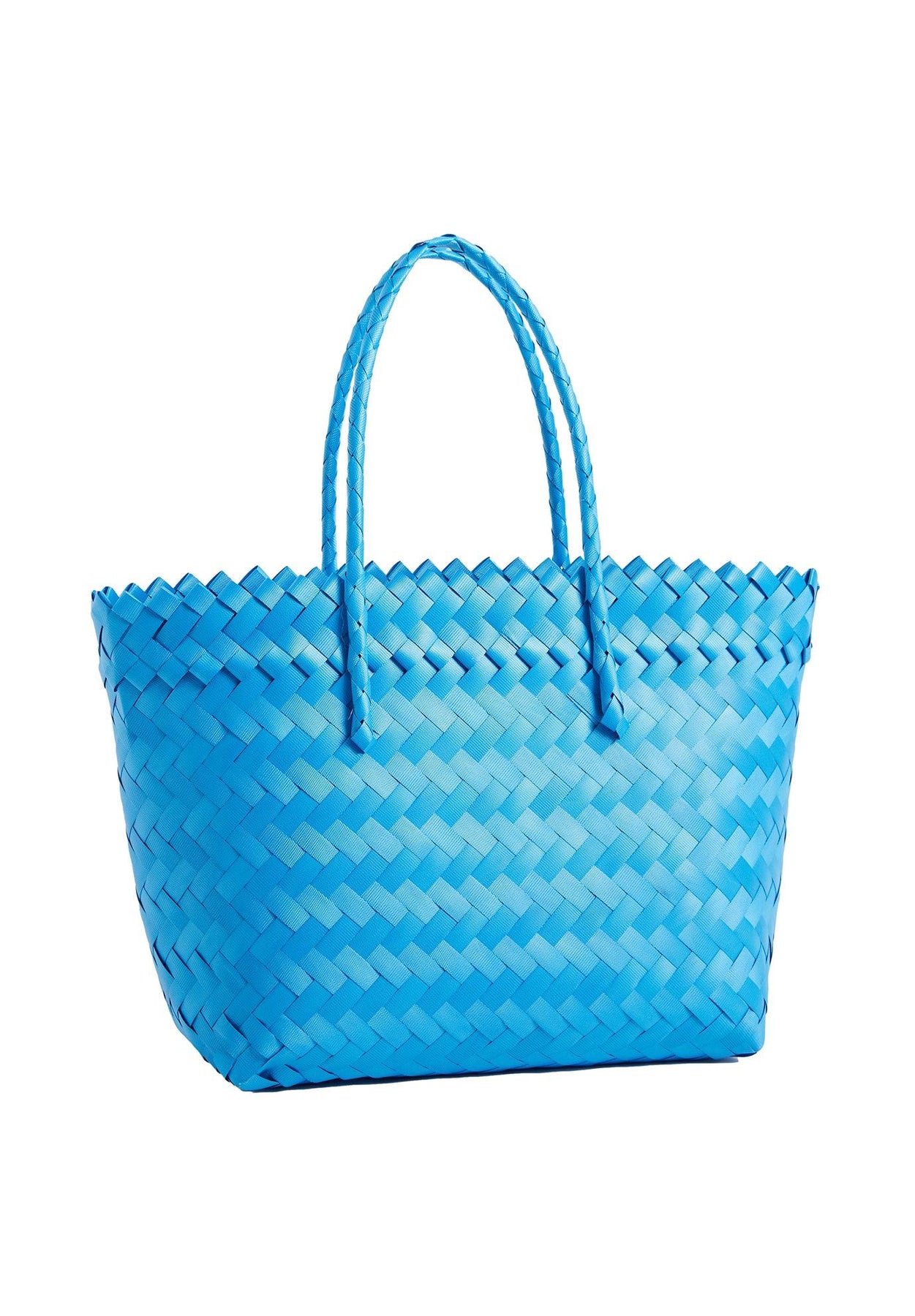 Our big and bright Woven Bag is perfect for everything from a day at the beach to running errands. It has a large interior and handles that can go over the shoulders if necessary.