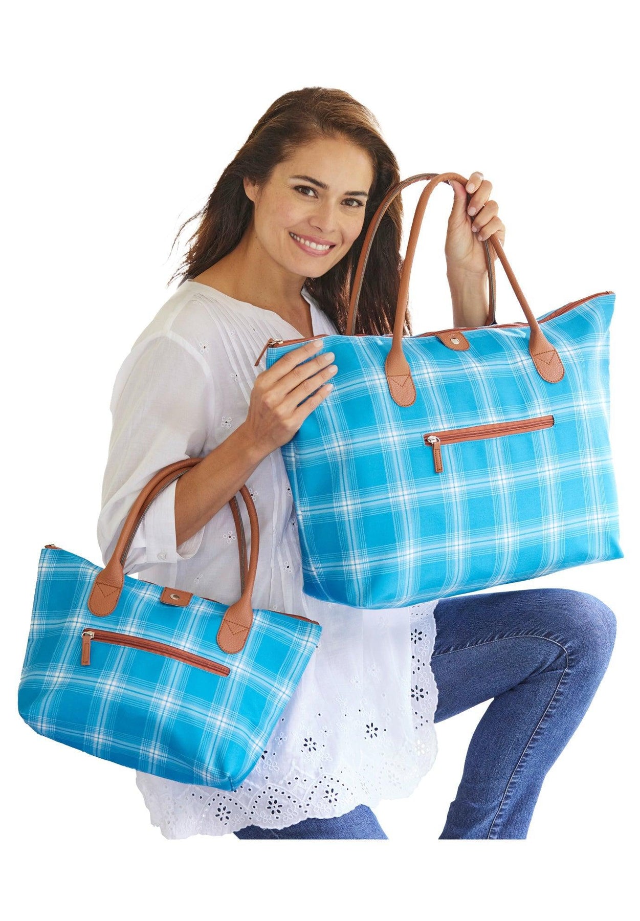 This pretty plaid travel set fits everything you need in 2 perfectly sized bags to make your packing a breeze.