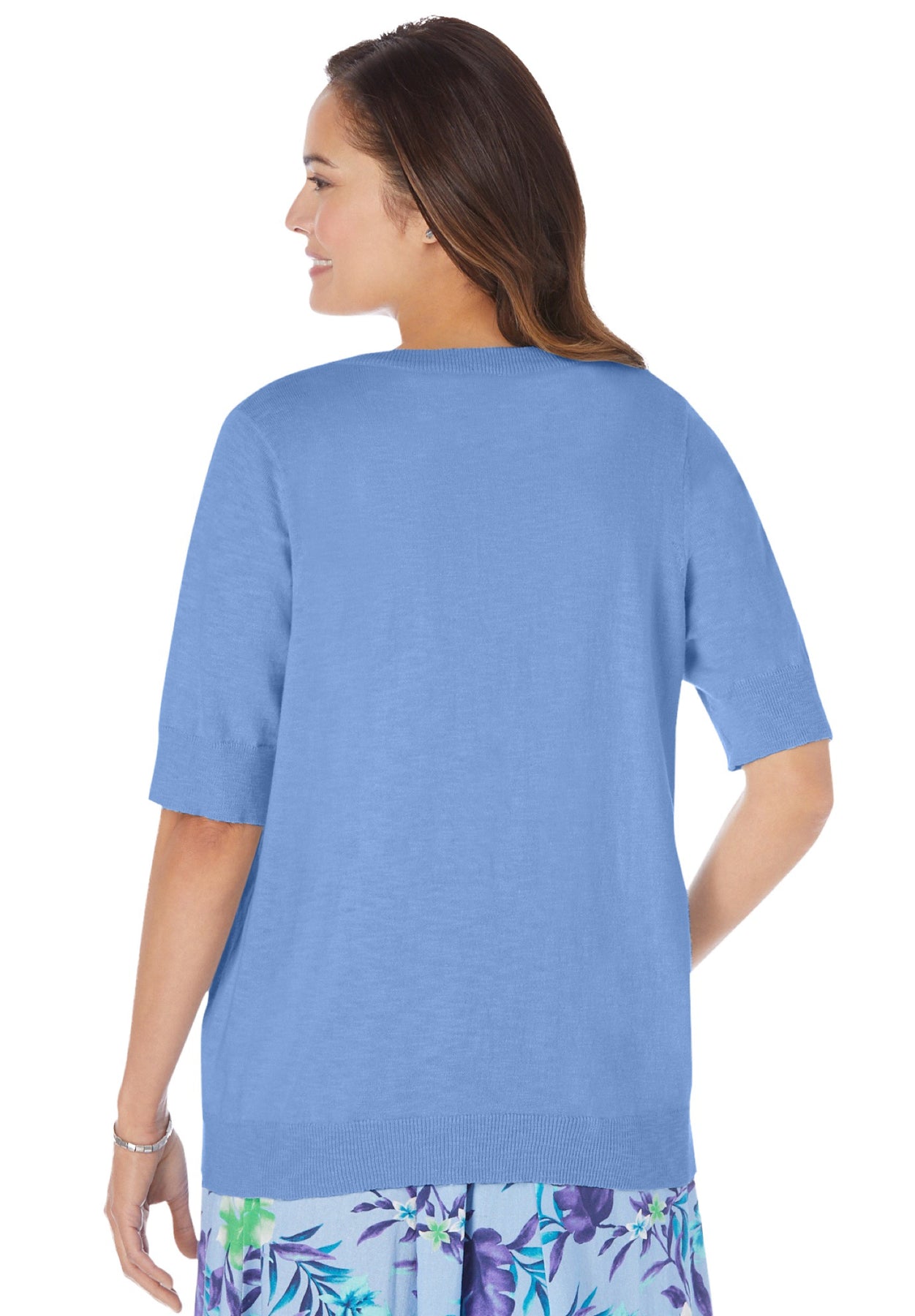 Our beautiful Short Sleeve V-Neck Cardigan is just what you need for warmer weather. The cotton knit is lightweight and comfortable, while short sleeves are great during spring and summer. Pair this sweater with everything from a tee to a dress for a polished look that's still relaxed.