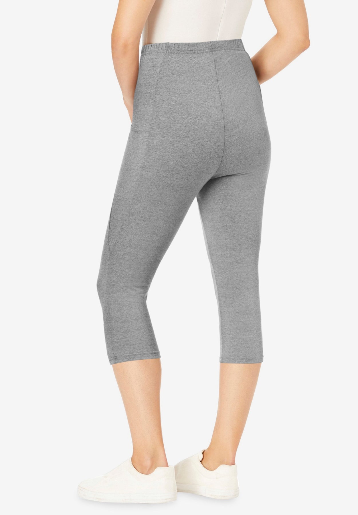Stretch-Cotton Knit Pull-On Pocket Capri Leggings | Woman Within