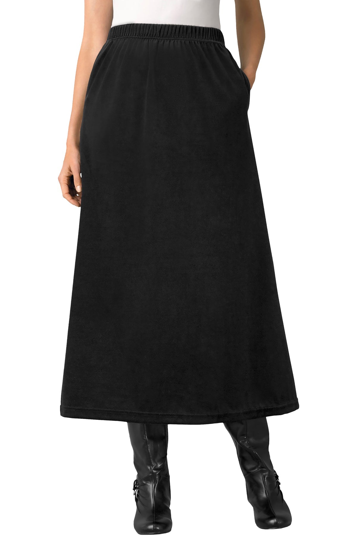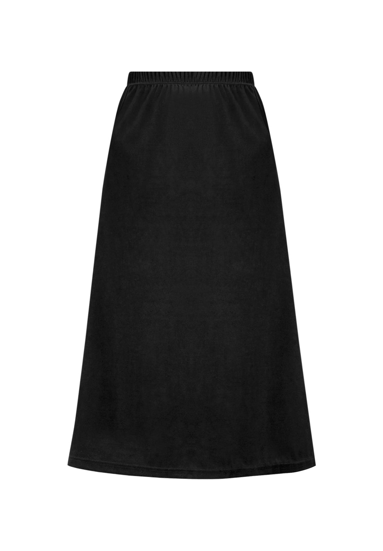 Add a little luxury to any day without sacrificing comfort. Our Velvet A-Line Skirt has a full elastic waistband and side slant pockets.