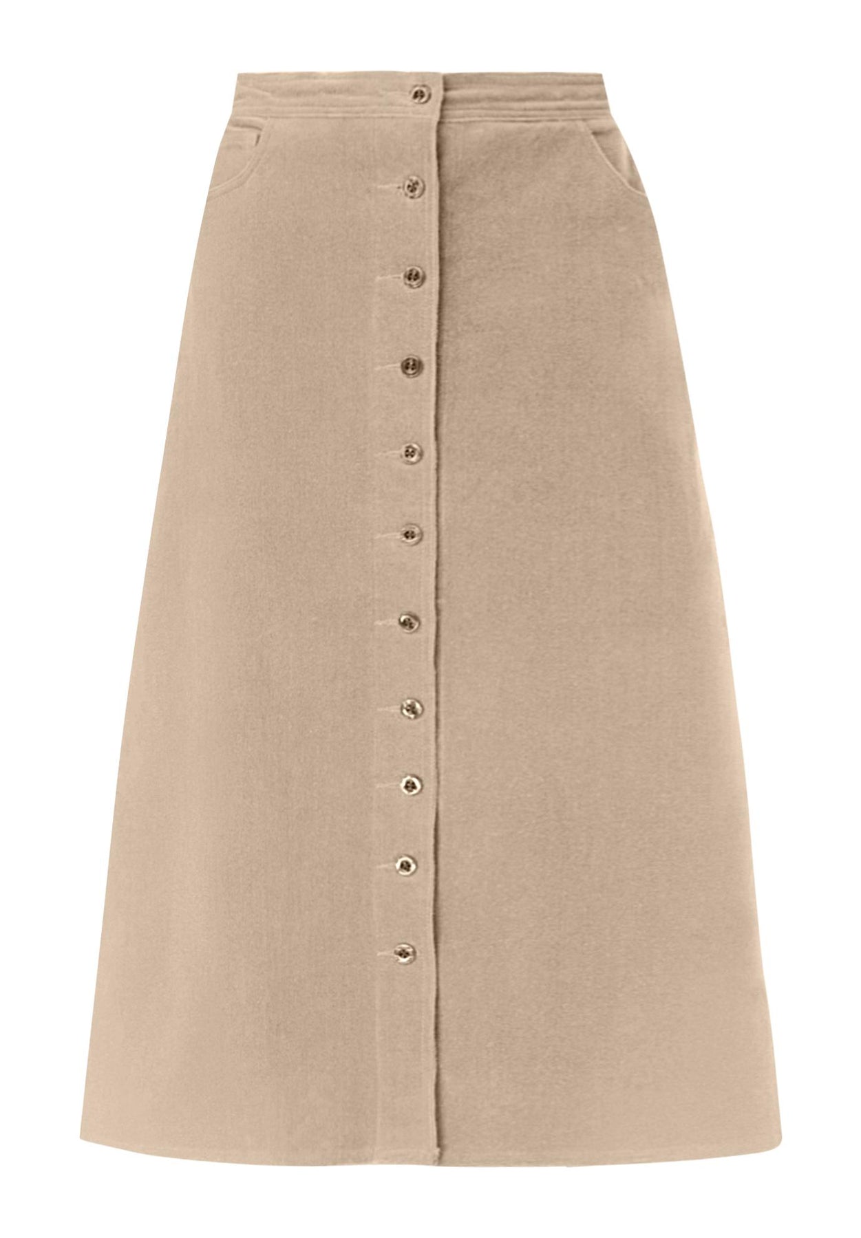 My black skirt arrived on Monday, March, 17.th. I can easily confirm what I wrote on December, 29.th 2024 about my chocolate one: it is made with a soft comfortable fabric, it is flared, so that the wearer can easily walk and the length is between calf and ankle, just above my ankle boots, at least for me, that I am 5' 11" tall. The images on the Internet site do not give the same favourable impressione one can have directly seeing and touching the item: the buttons really match the fabric colour, being, by the way, soft to fasten and unfasten.