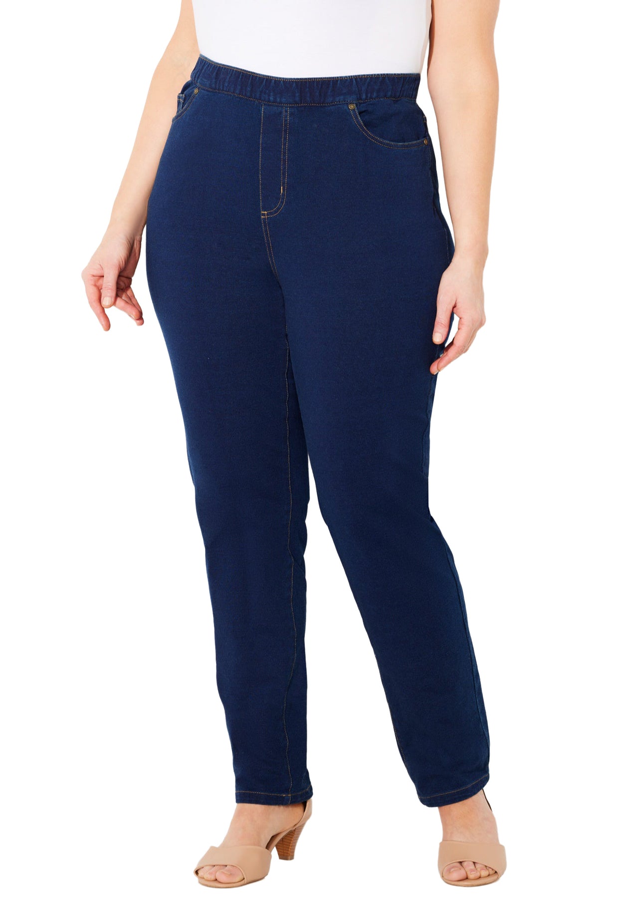 FIT: Like all Curvy Fit bottoms, this jean is designed to flatter body shapes that are curviest at the hips. Pull-on elastic waist. Front pockets. Slim leg.