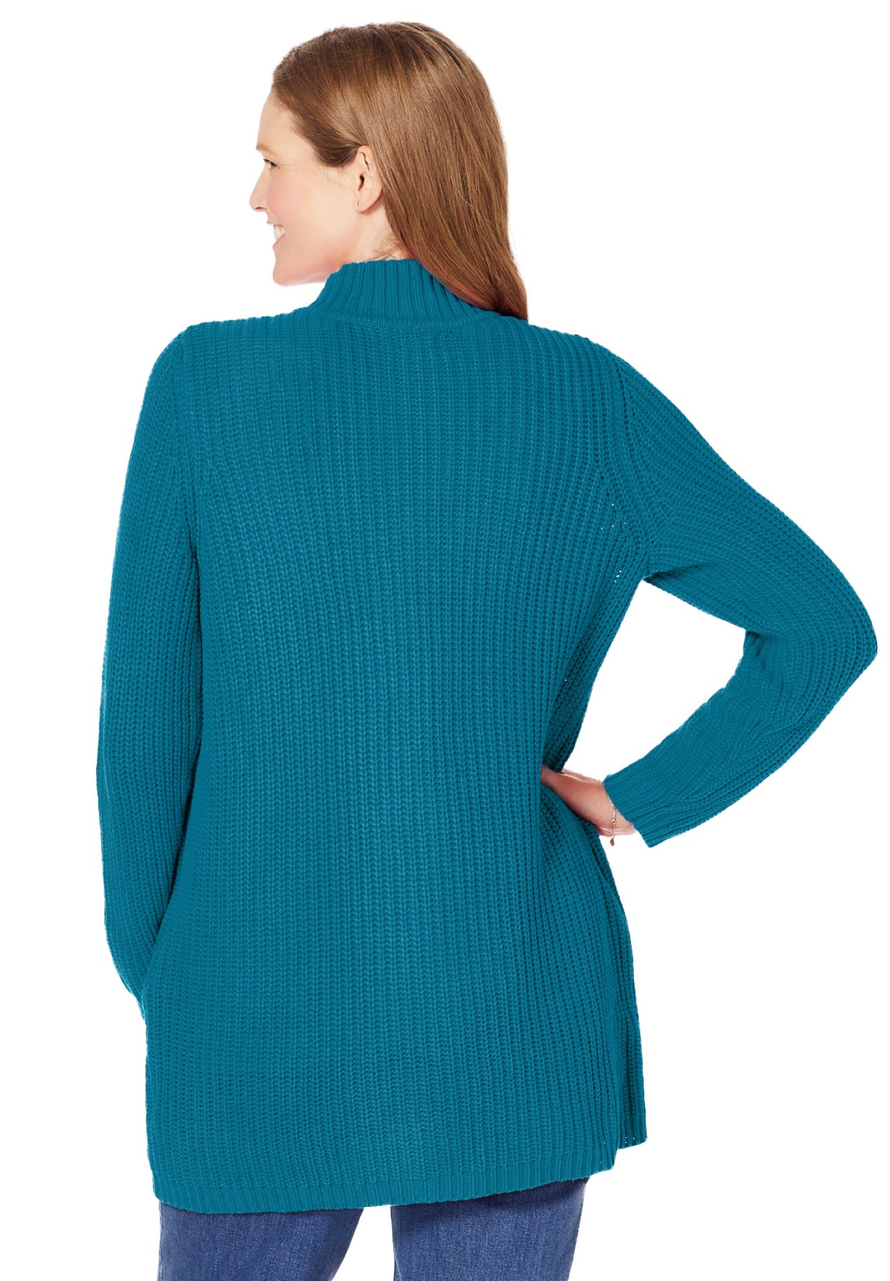 This shaker stitch cardi has cozy covered. A mock neck can be zipped up to keep you nice and warm. Layer it over your tops and tees when you need an extra layer of warmth.