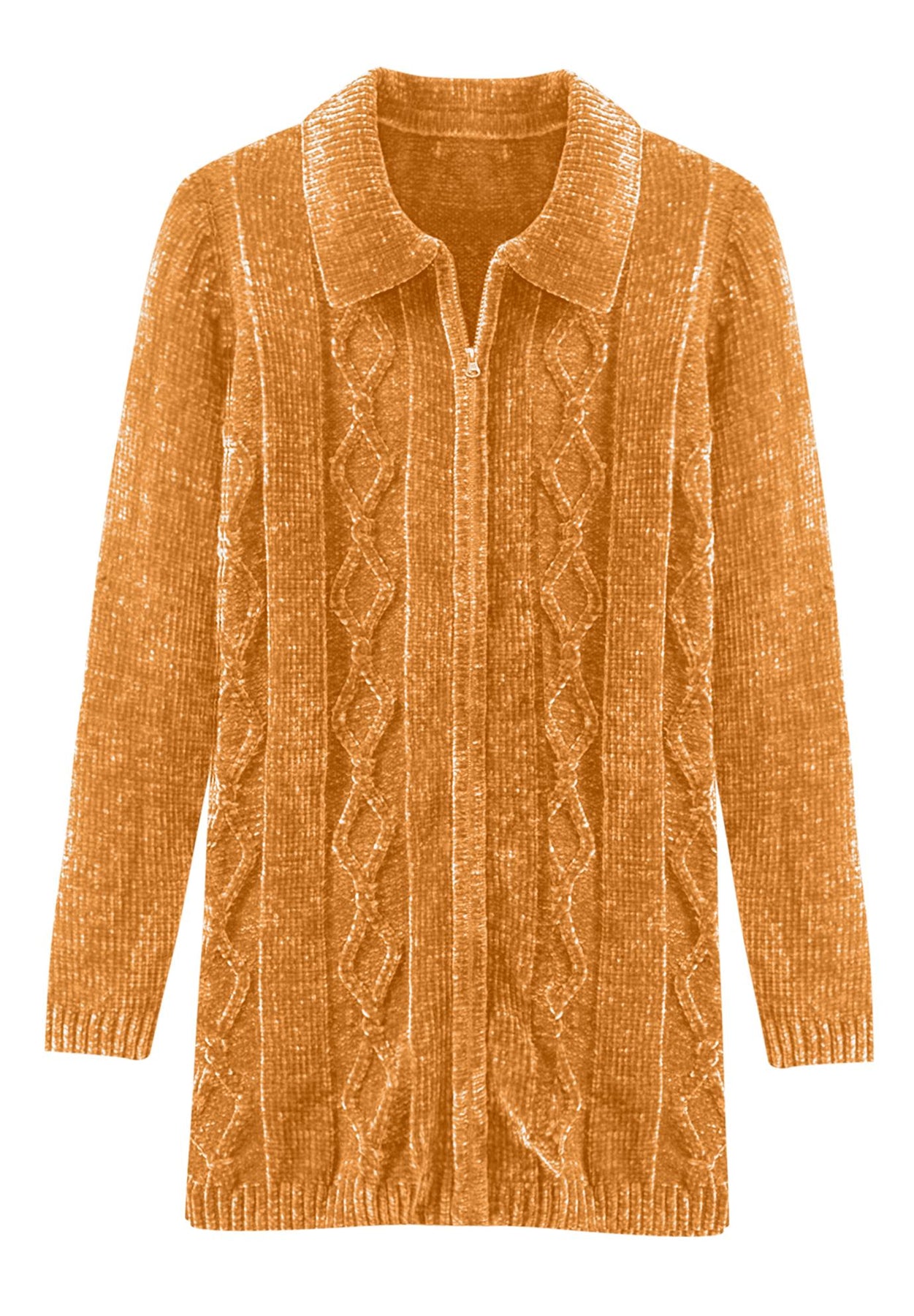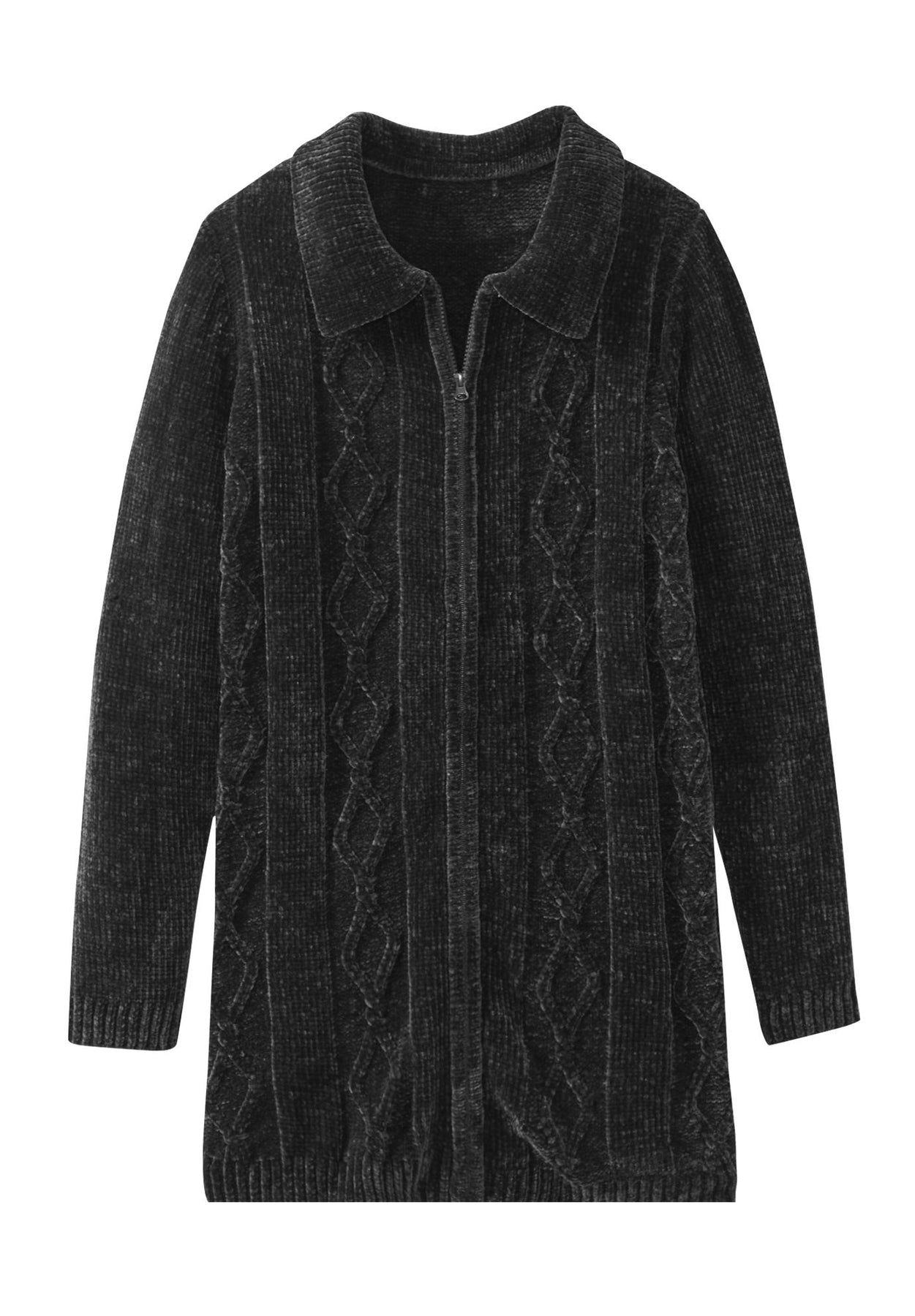 Chenille Zip Cable Cardigan Sweater