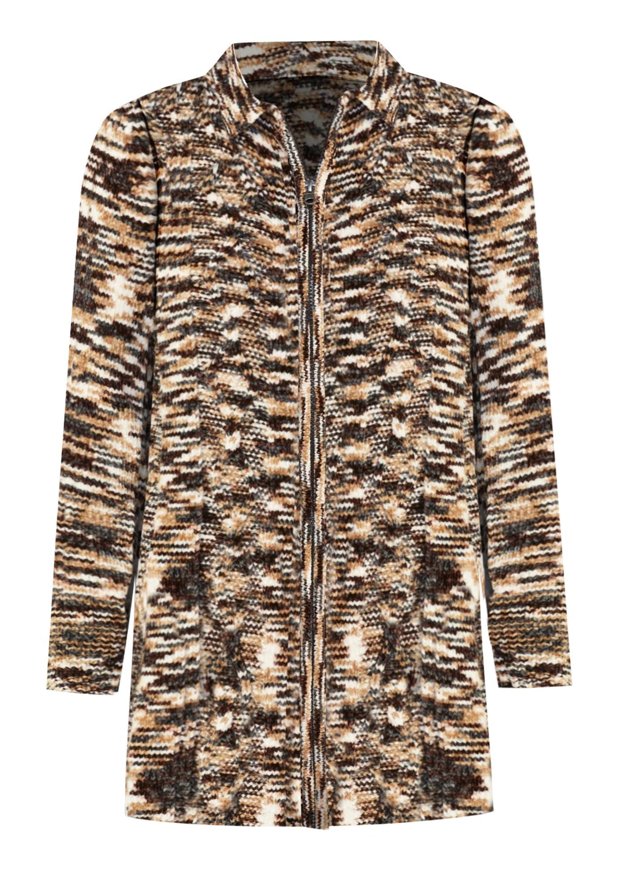 A cable version in cozy chenille! Who could ask for anything more! The zip front and ribbed collar give it classic style.