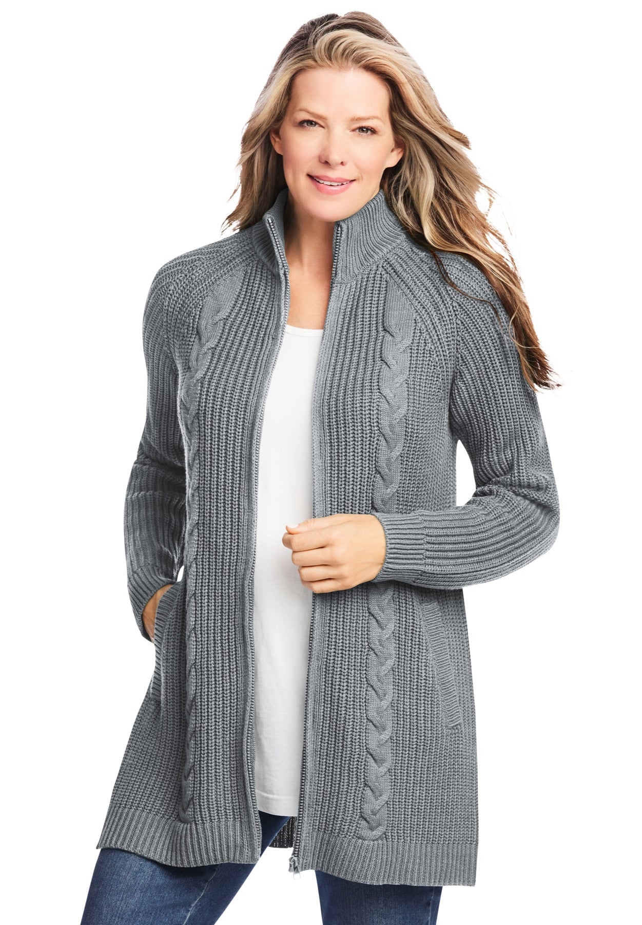 Cabled Zip-Front Cardigan | Woman Within