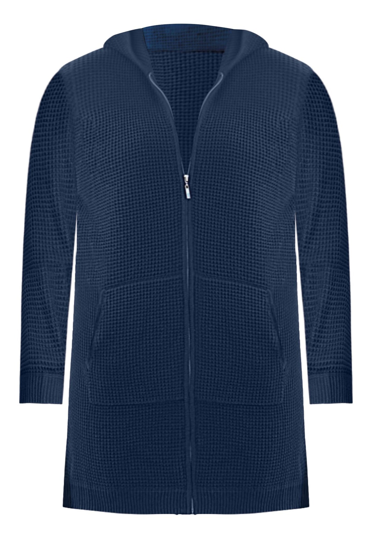 Go the extra mile for comfort with this Mega-Length hoodie. Zip-front with long sleeves and two front pockets, rib cuffs and hem. Side slits.