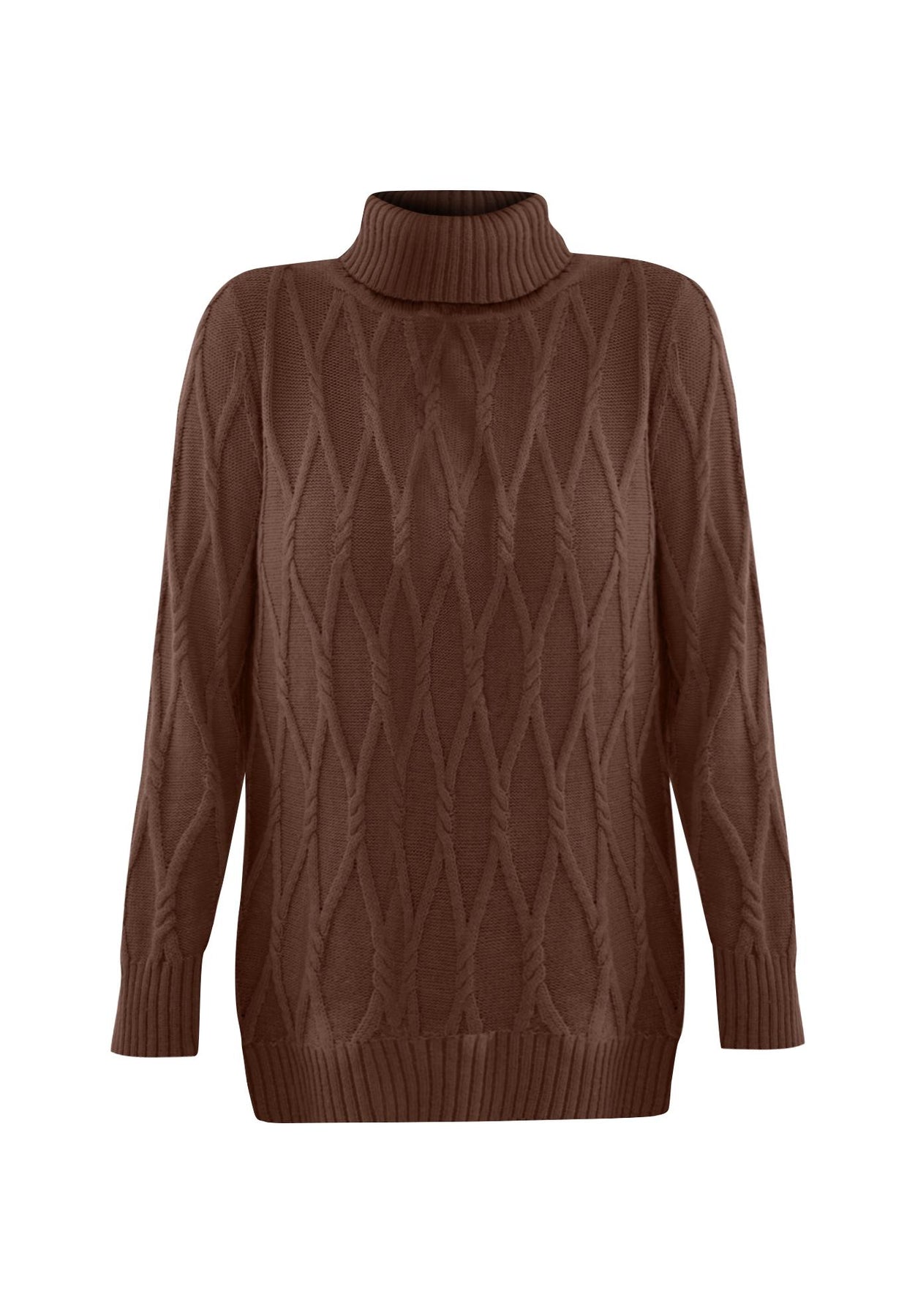 The piece to pick when you want to add a little something extra to your knitwear collection. This turtleneck with a classic cable-knit design is finished off with a high-low hem that lends an effortlessly chic look.