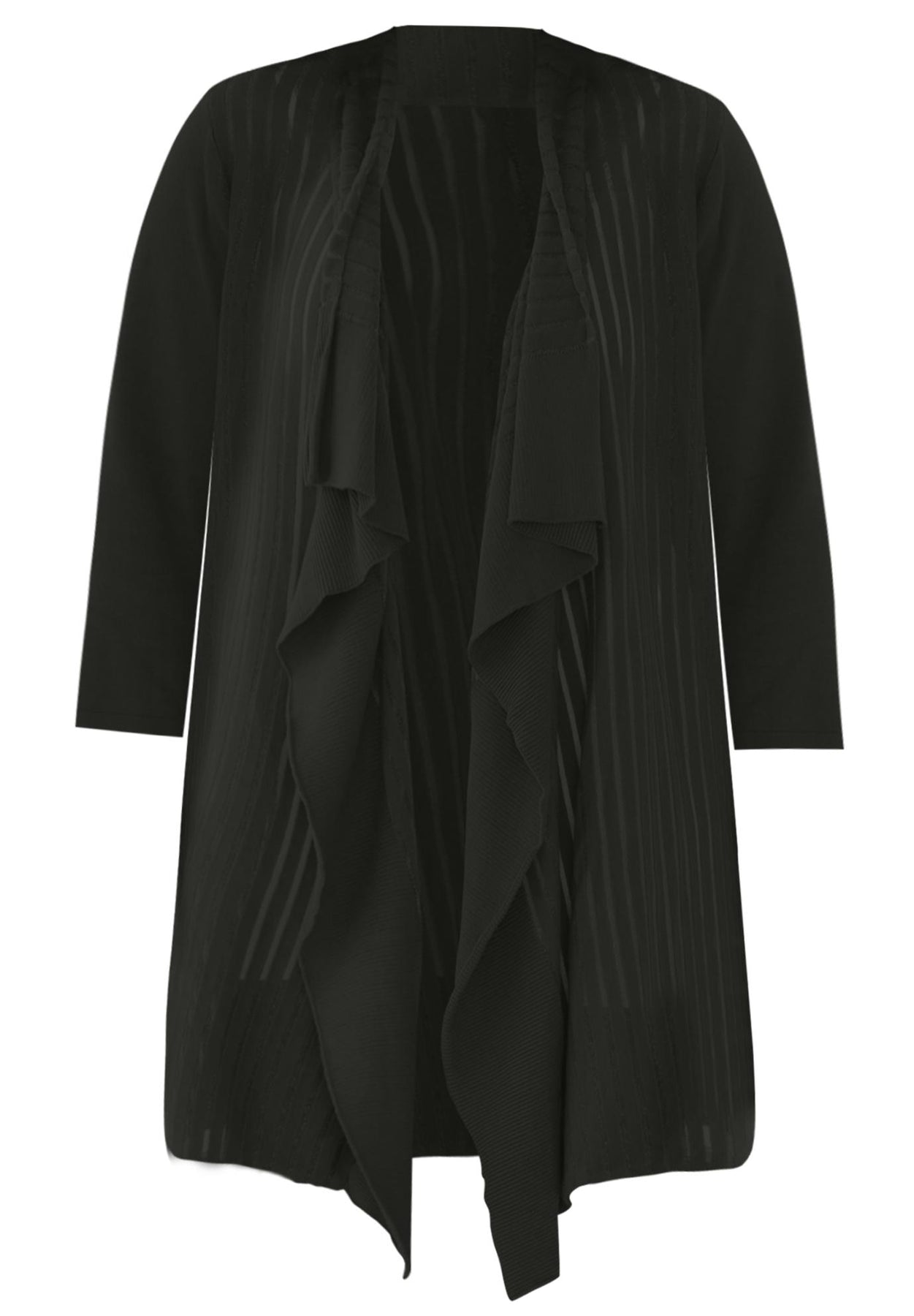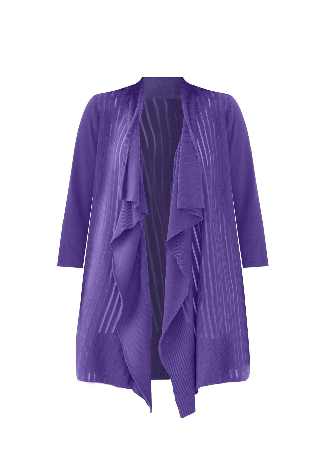 FIT: Soft and billowy, with a long, draping open front and shorter length in back. 3/4 sleeves.
