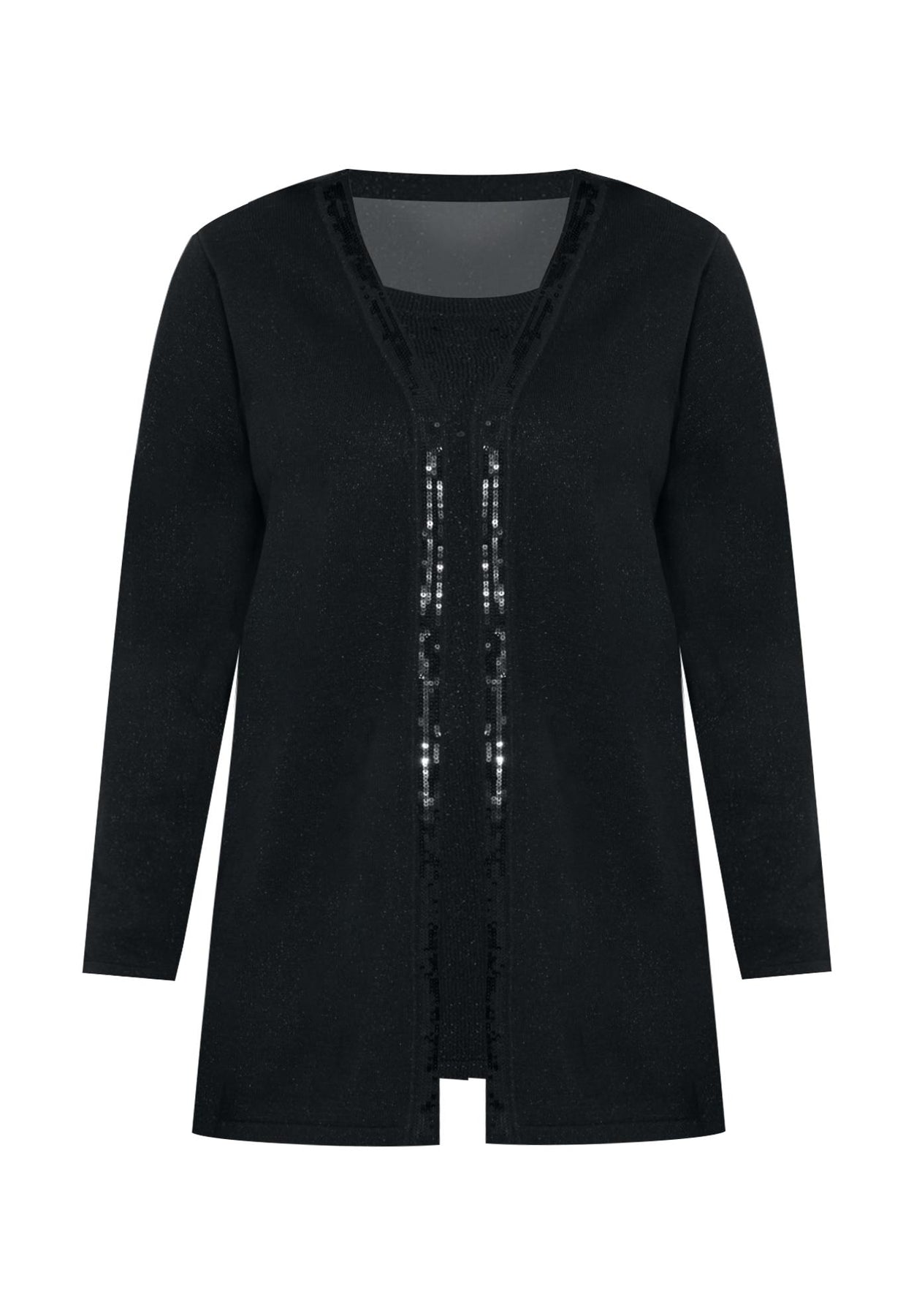 Sequin Trim Tank Cardigan Duet