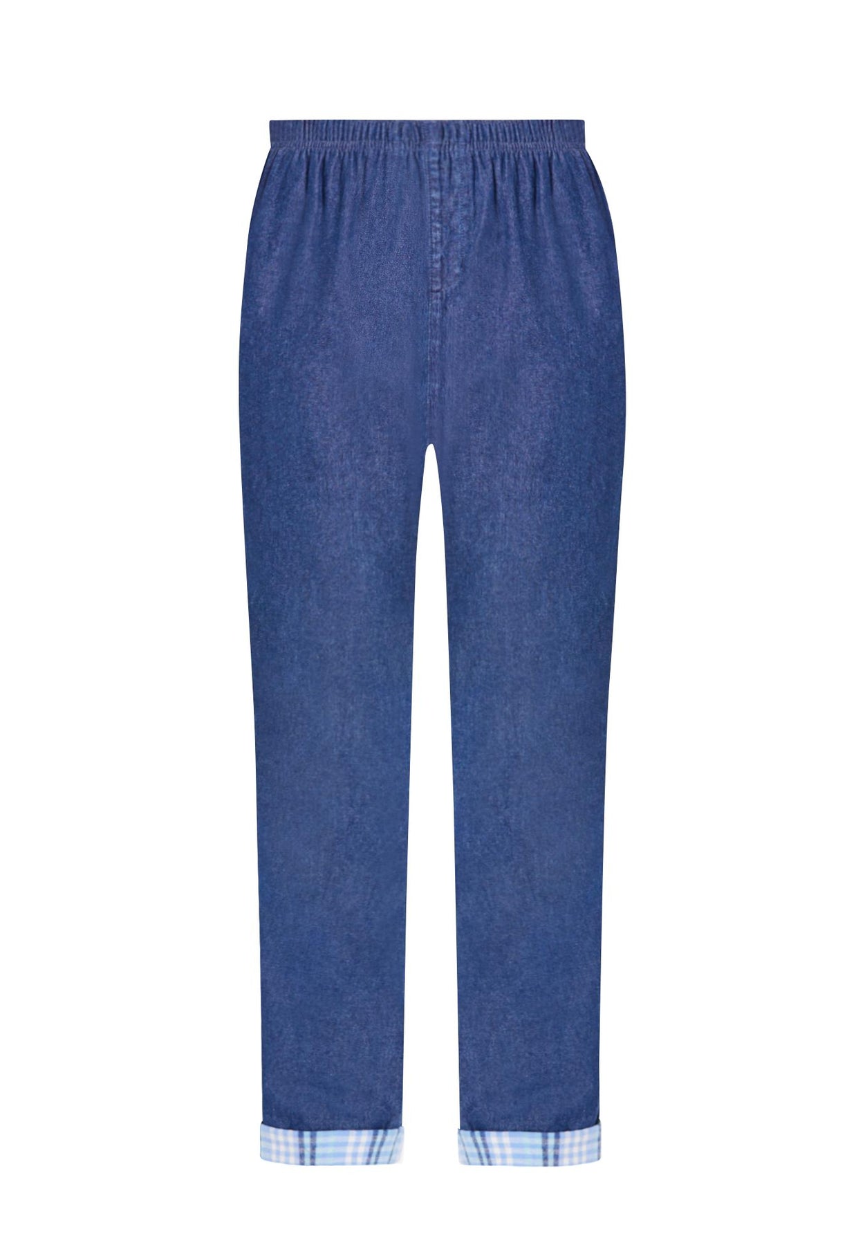 Elastic-Waist Cotton Straight Leg Denim Pant with Flannel Lining