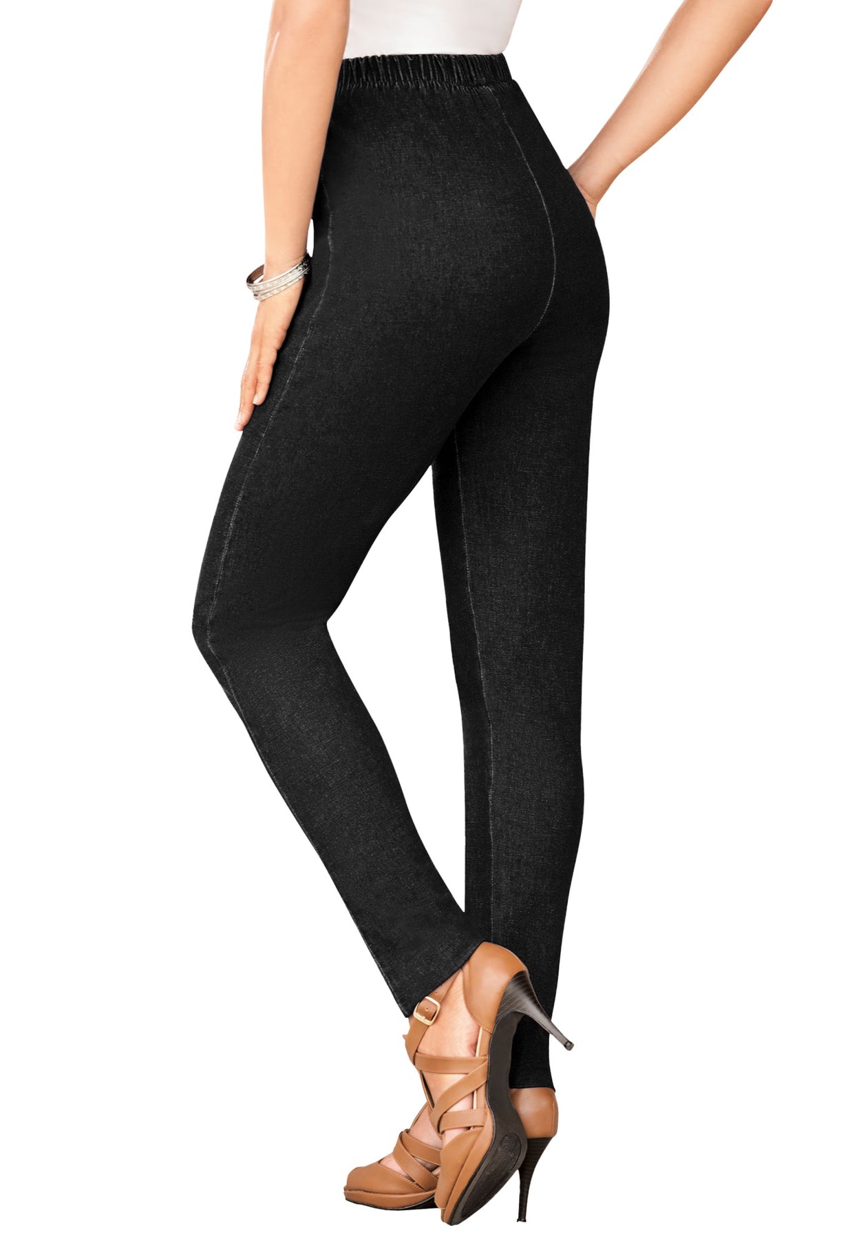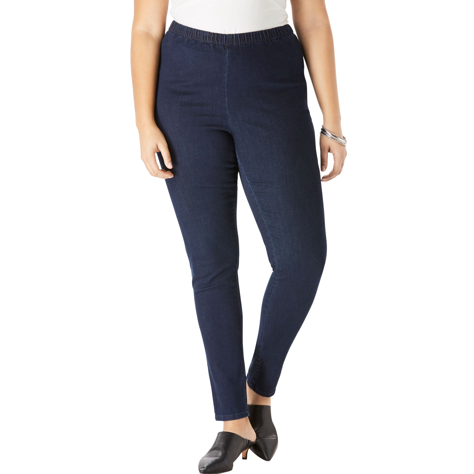 Easily slip in (and out) of these slim-leg jeans, designed with just the right amount of stretch for all-day comfort and a flattering fit. Perfect for everything from weekend outings to casual Fridays, this pair features an elastic waistband and no pockets for sleek style.