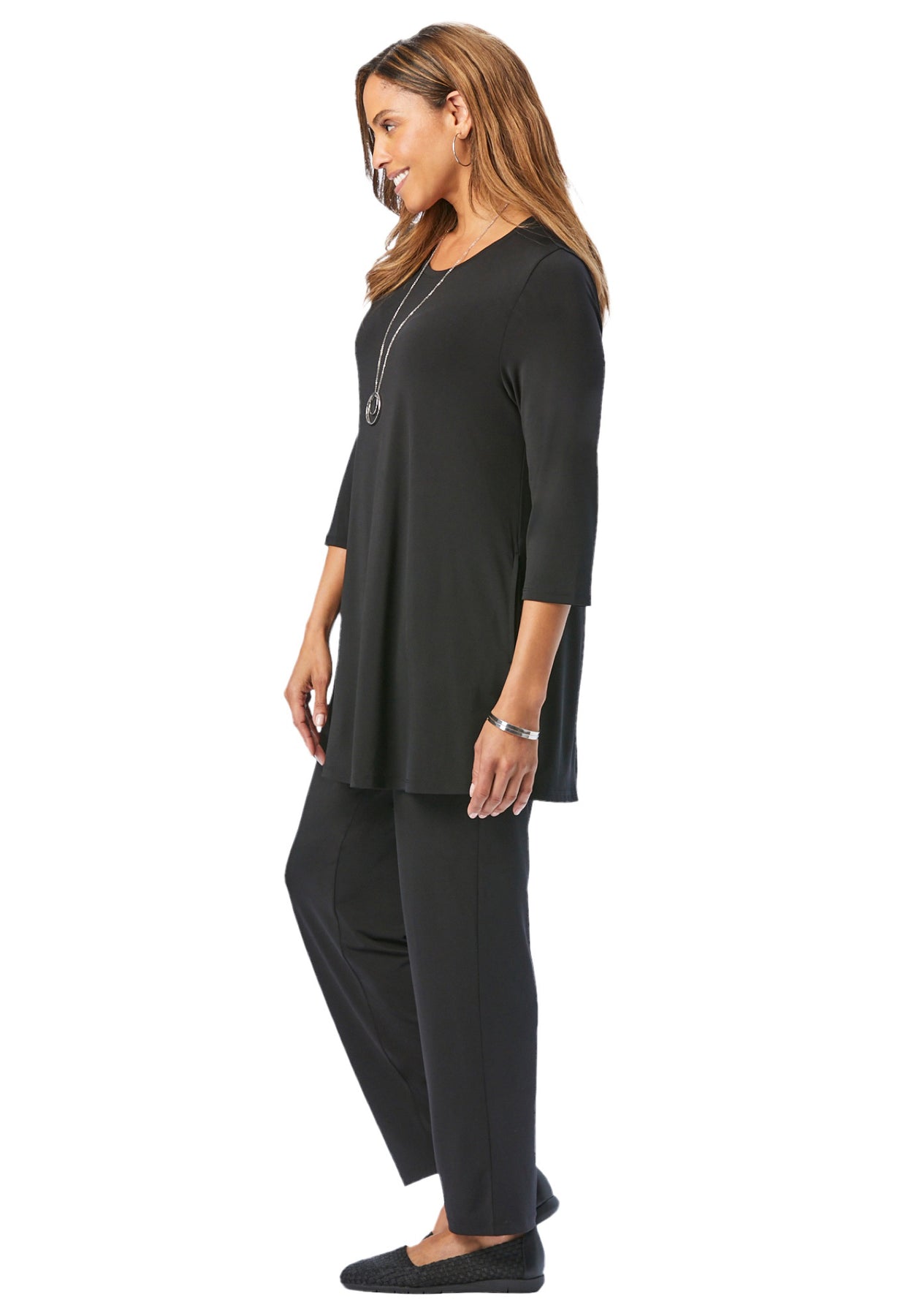 Crafted from our premium stretch jersey fabric, the Jessica London women's plus size Mega Swing Set is the style due your wardrobe is missing! Features a trapeze top with a feminine drape and a straight leg pant with a modern, tailored finish.