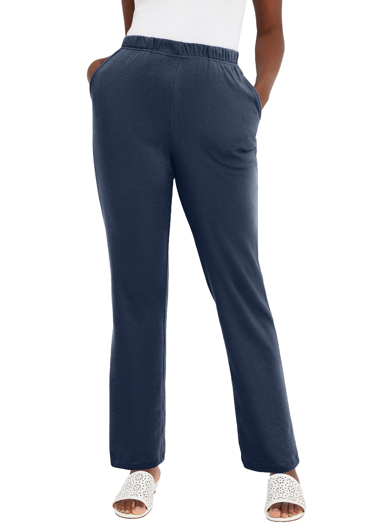 Experience the ultimate blend of soft-knit comfort and tailored polish in the Jessica London women's plus size Soft Ease Collection Straight Leg Pant. With its streamlined silhouette, pull-on elastic waistband and fabric designed to move with you, this straight leg pant is an effortless essential for the office and out and about.