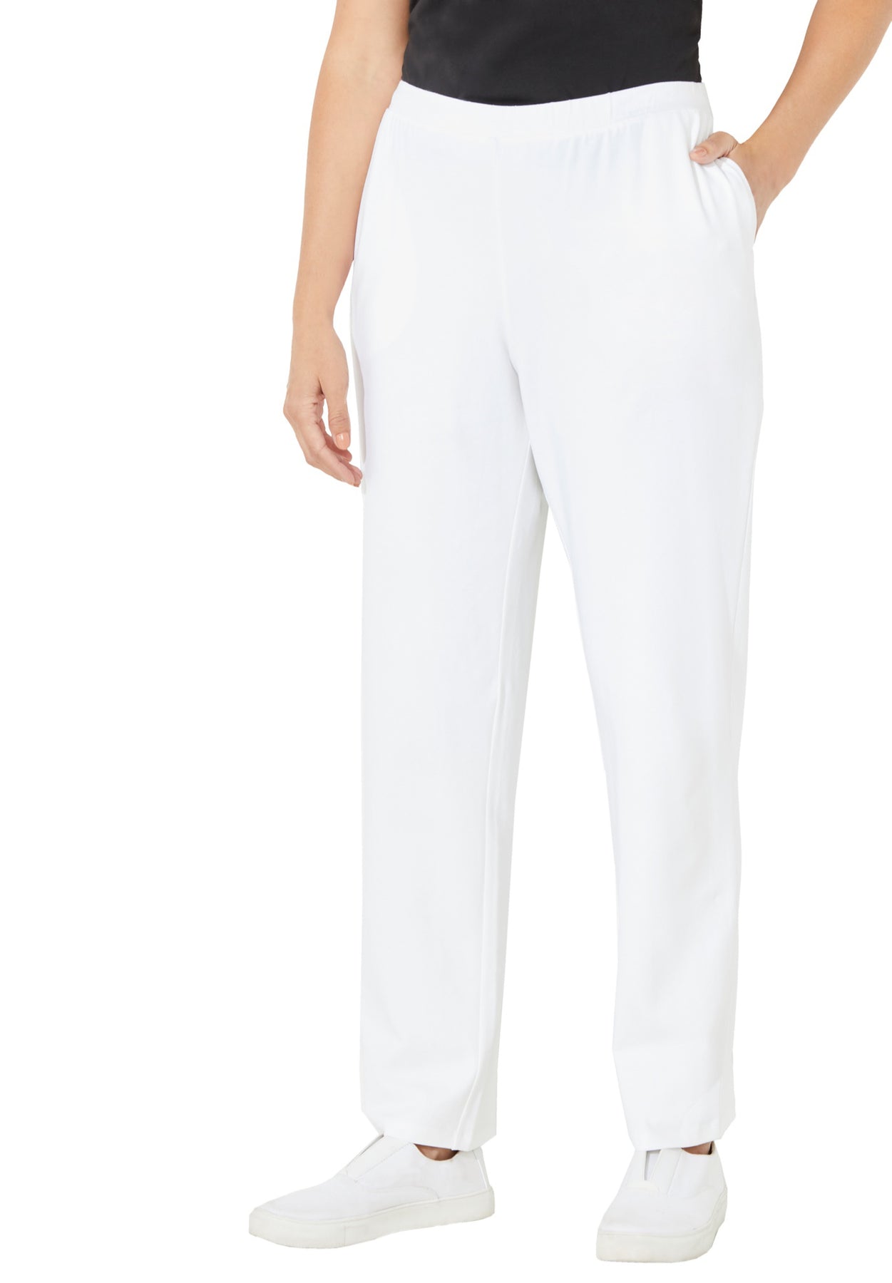 FIT: An easy, comfortable design that skims the body from hip to hem. Covered elastic waist. Pockets. Straight leg. No closure, easy pull-on style.